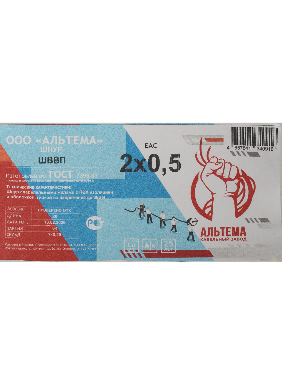 Провод ШВВП 2х0.5 мм², 20 м, медь, ГОСТ — надёжное подключение электроприборов для дома и дачи.Альтема.