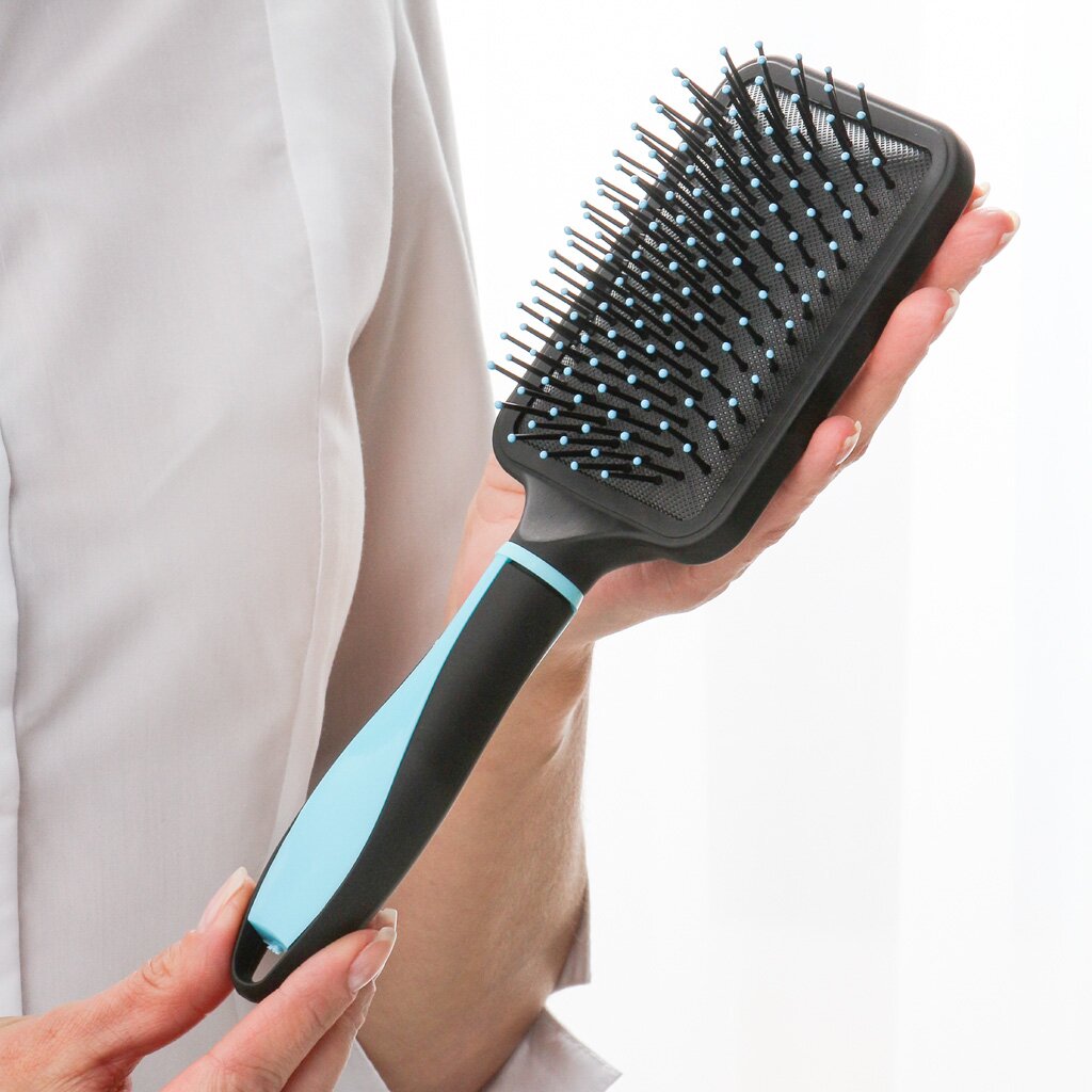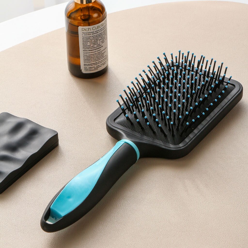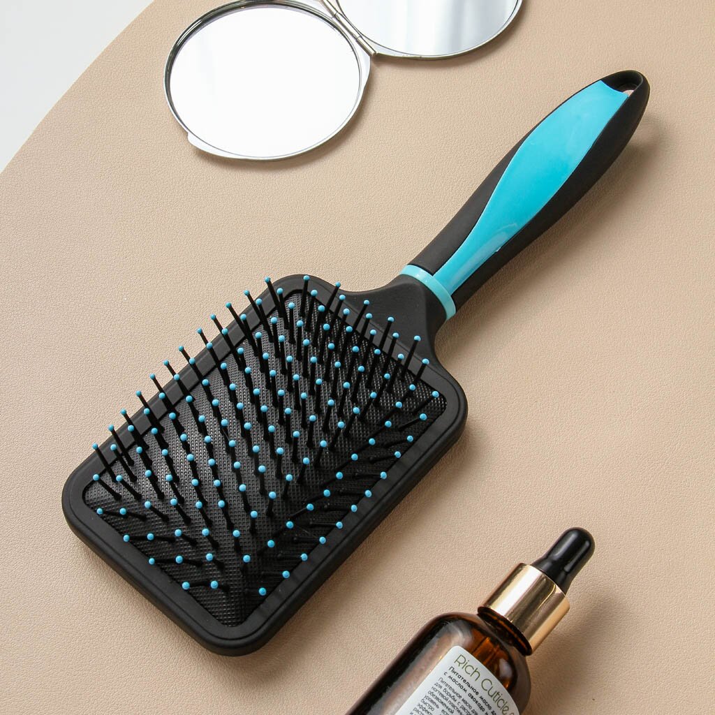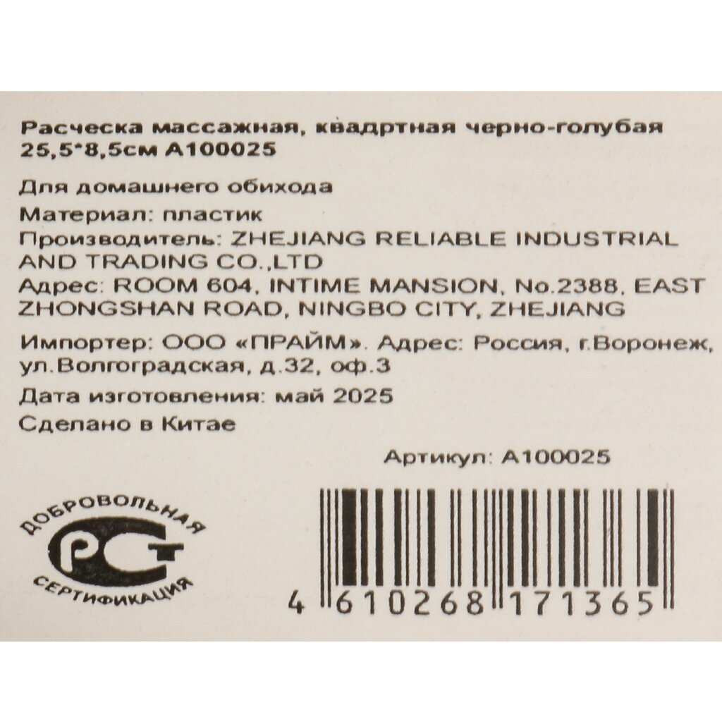 Расческа массажная, 25.5х8.5 см, квадрат, чер-голуб, A100025