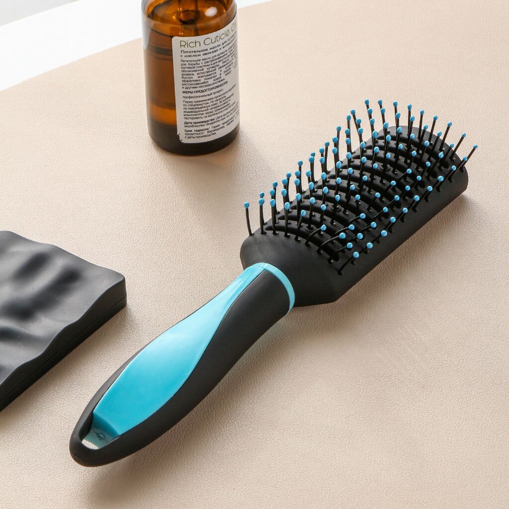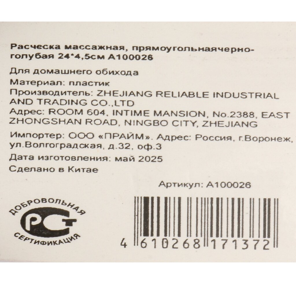 Расческа массажная, 24х4.5 см, прямоуг, чер-голуб, A100026