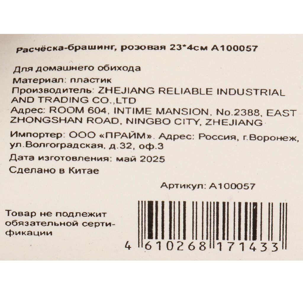 Расческа брашинг, 23х4 см, роз, A100057