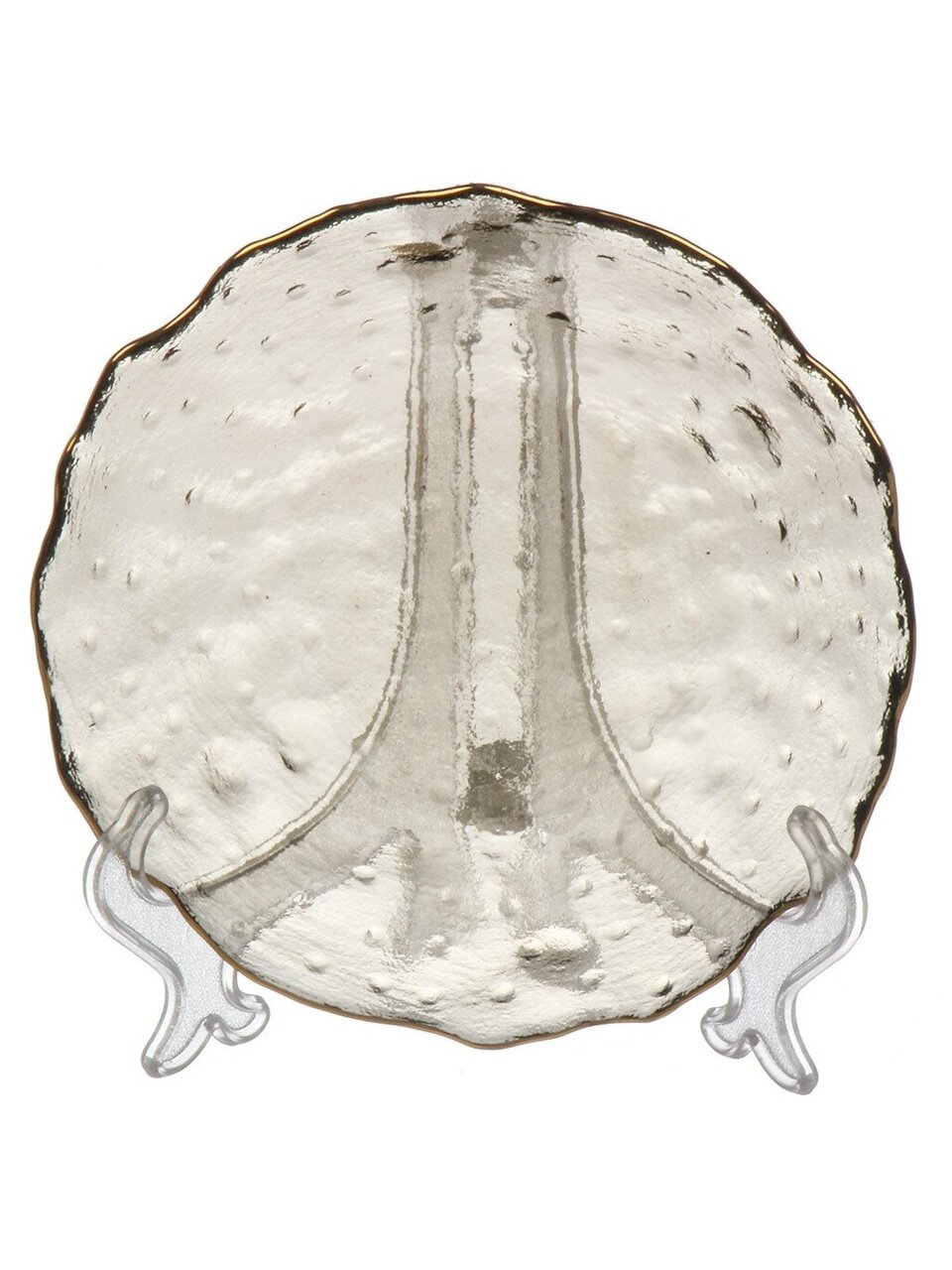 - Уникальный дизайн: рельефное стекло с золотой окантовкой – современное украшение стола