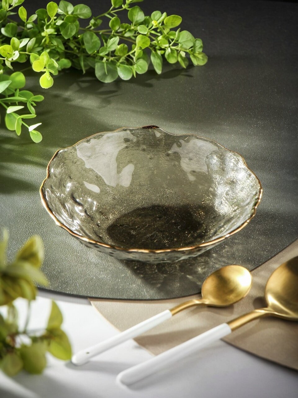 Часто спрашивают: «Как выбрать салатник для сервировки?», «Подходит ли для подарка?». Благодаря современному дизайну и универсальной форме, этот салатник гармонично впишется в любой интерьер – от минимализма до классики. В отличие от керамических и пластиковых аналогов, стеклянная модель не впитывает запахи и легко очищается. Если вы ищете, чем отличается салатник с золотой окантовкой, обратите внимание на его презентабельность и долговечность покрытия.