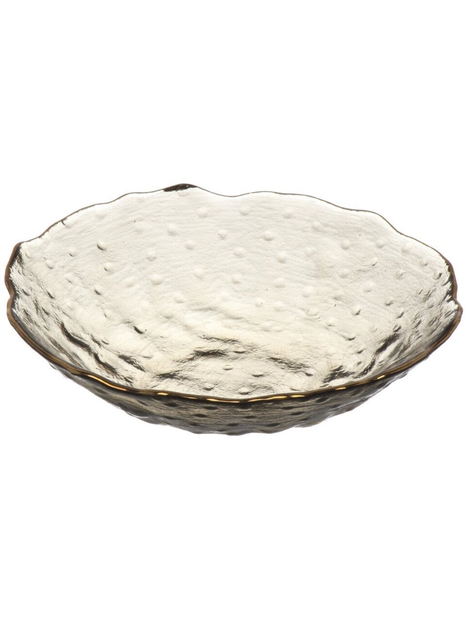 Салатник стекло, круглый, 14х3.5 см, Графит с золотом, A050013 – выбор тех, кто ищет недорогую посуду для сервировки и декора. Модель выполнена из прочного стекла, устойчивого к царапинам и мытью в посудомоечной машине. Благодаря компактному размеру и объёму 1 л, салатник идеально подходит для подачи салатов, закусок, фруктов и десертов. В отличие от обычных прозрачных салатников, эта модель имеет стильное графитовое стекло с золотой окантовкой, что делает её заметным акцентом на любом столе.