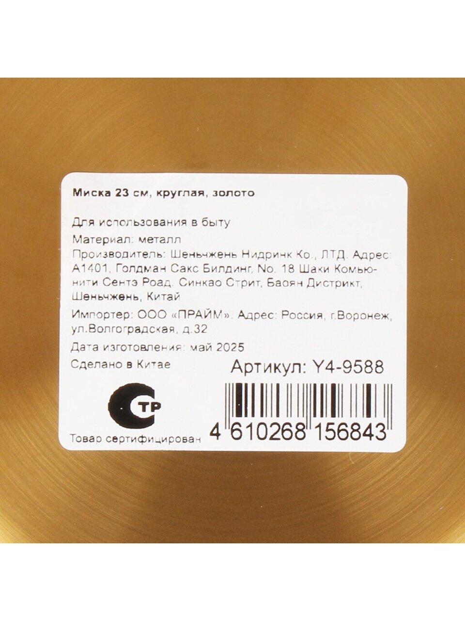 Материал — нержавеющая сталь, диаметр — 23 см, форма — круглая, цвет — золото, крышка и подставка не предусмотрены, в комплекте 1 штука.