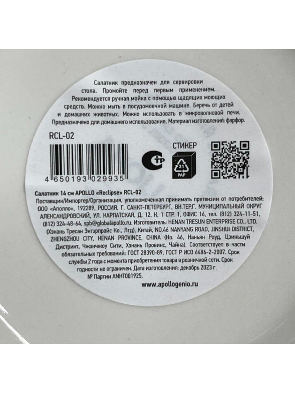 Вы можете приобрести «Салатник керамика, круглый, 14х6.7 см, Eclipse, Apollo, ECL-02/RCL-02, черно-белый» и другие товары в нашем интернет-магазине в Орле по низким ценам и с бесплатным самовывозом.