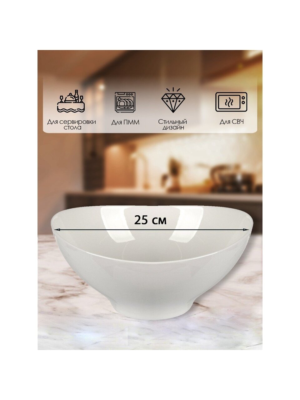 Салатник имеет диаметр 25 см и объём 1 литр, оптимально подходит для салатов, закусок, фруктов и подачи горячих блюд на 2-4 персоны.