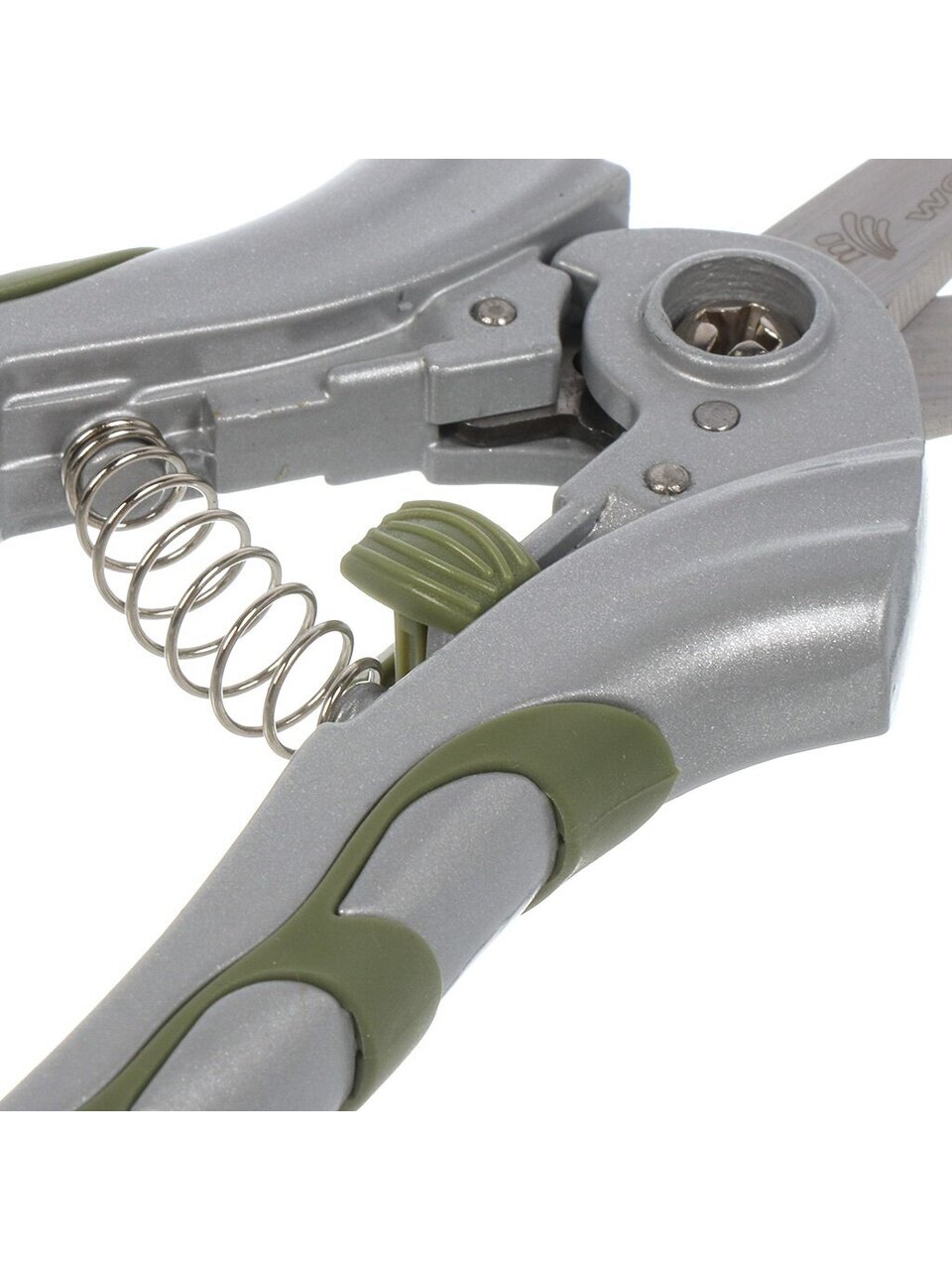 - Алюминиевые ручки делают секатор легким и удобным для работы, что позволяет сократить усталость рук при длительном использовании.