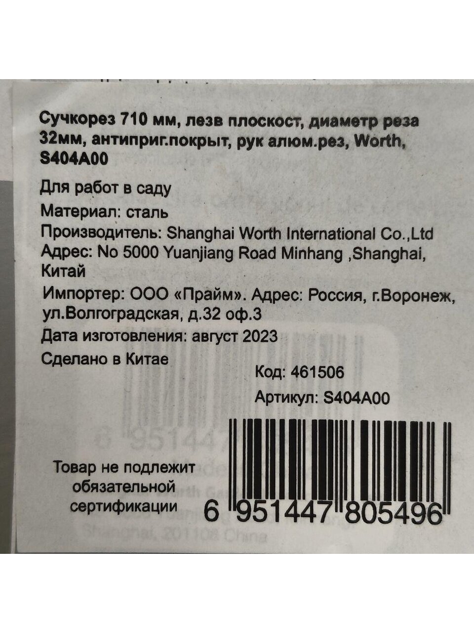 Вы можете приобрести «Сучкорез 710 мм, диаметр реза 32 мм, лезвие плоскостное, антипригарное покрытие, Worth, алюминий, резина, S404A00» и другие товары в нашем интернет-магазине в Смоленске по низким ценам и с бесплатным самовывозом.
