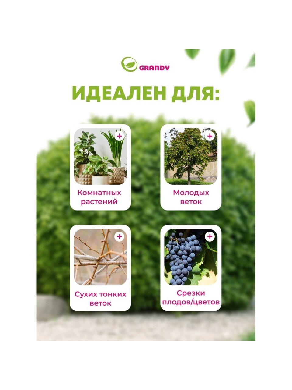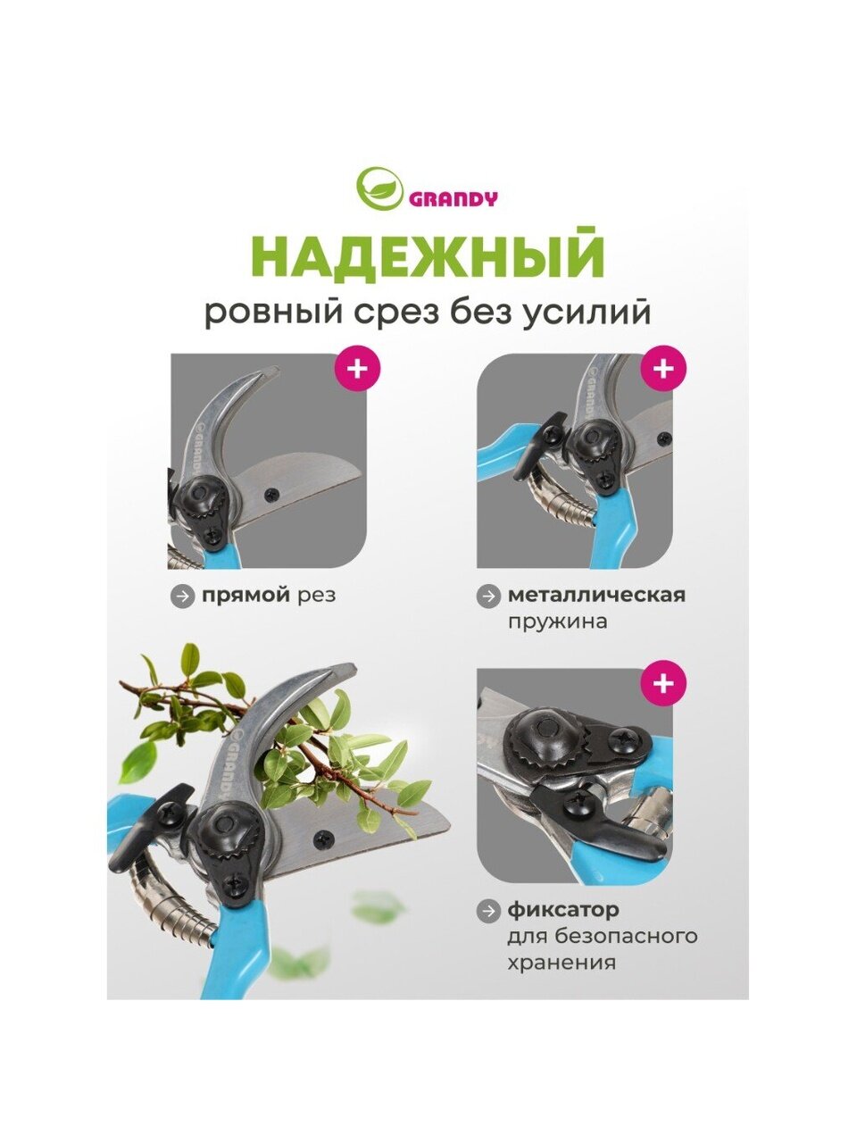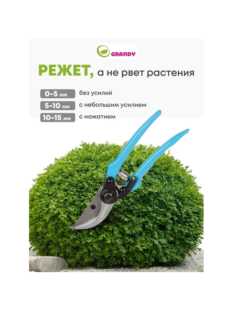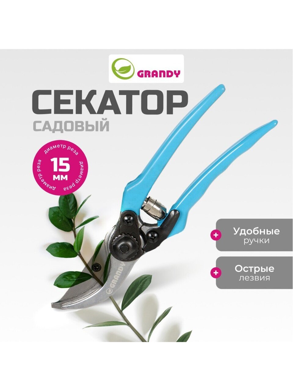 Секатор Grandy предназначен для выполнения работ по уходу за садом. Секатор с прямым резом, обрезиненными рукоятками и боковым фиксатором. Рекомендуется для обрезки живых веток диаметром до 15 мм.