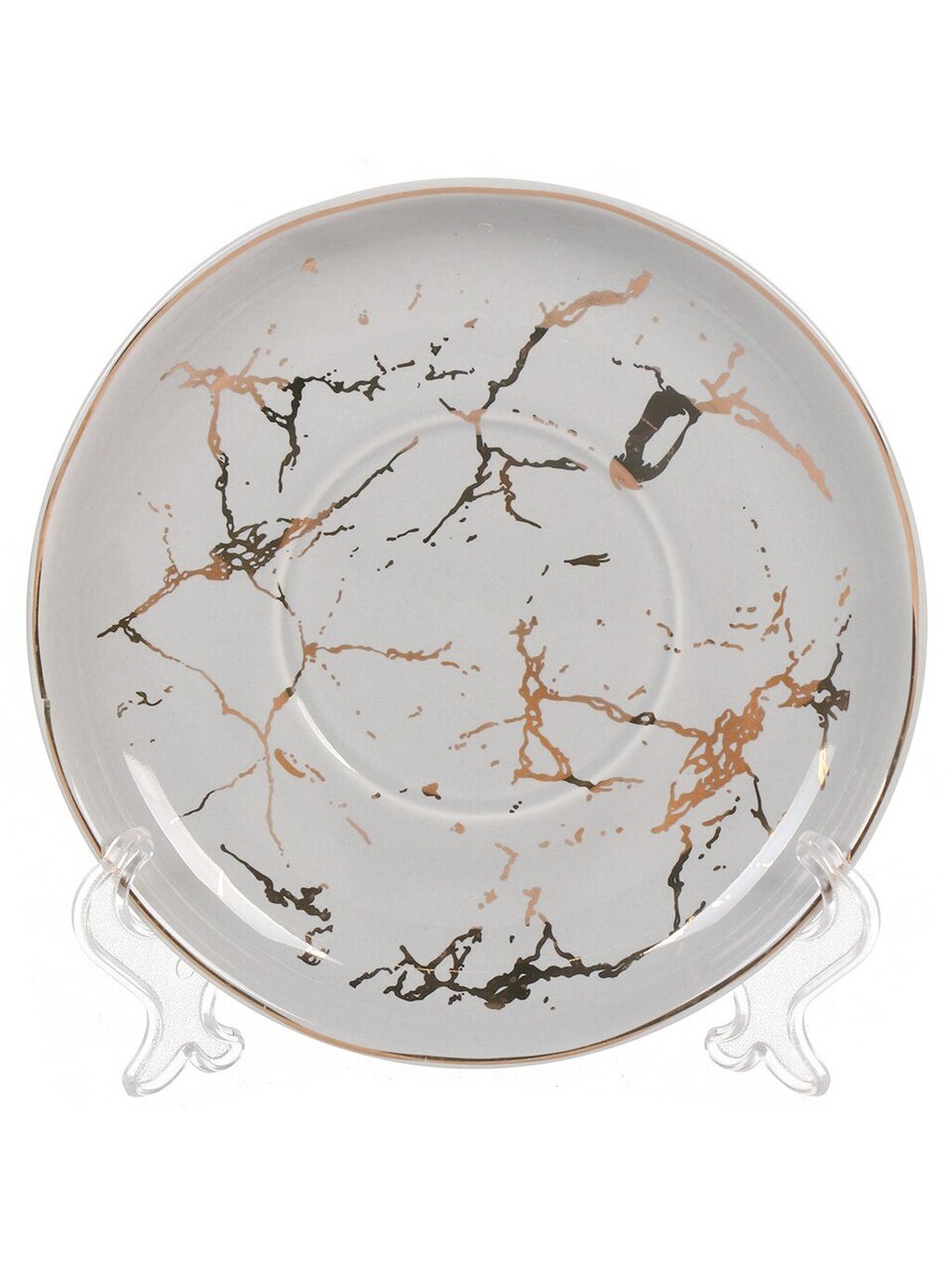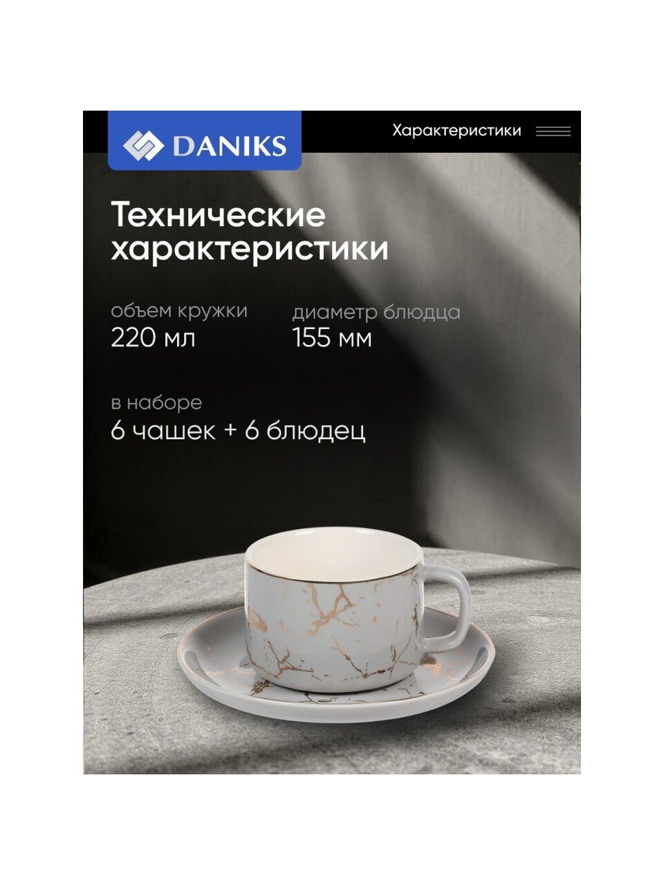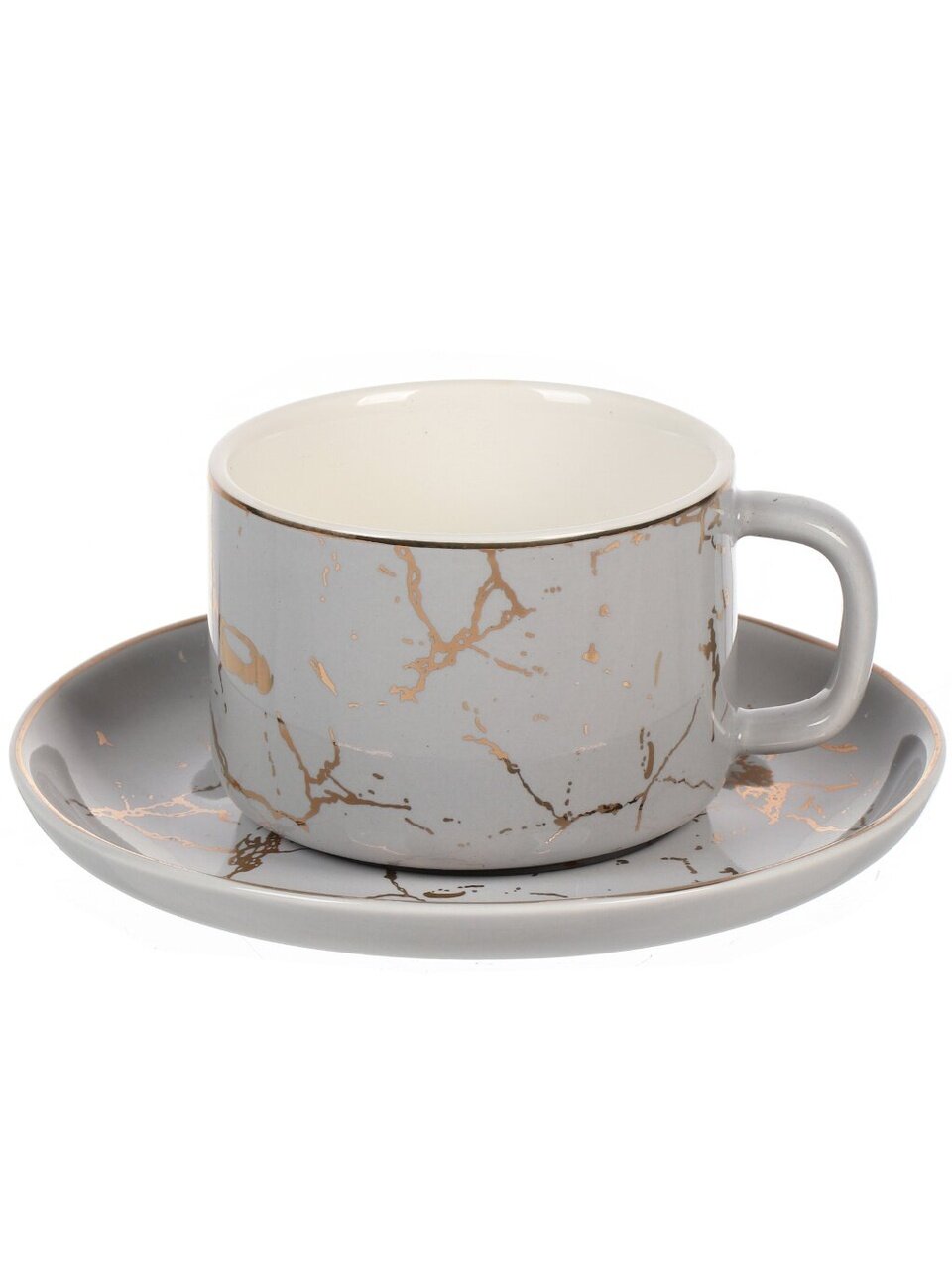 Чайный набор из керамики на 6 персон «Серый Мрамор» (12 предметов, 220 мл, подарочная упаковка): стиль для современного интерьера и идеальный подарок без лишних забот о хранении и уходе.