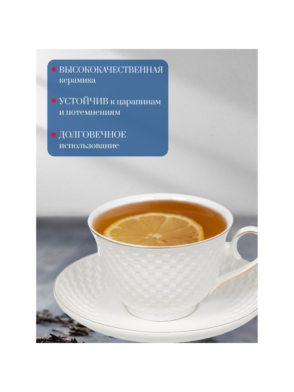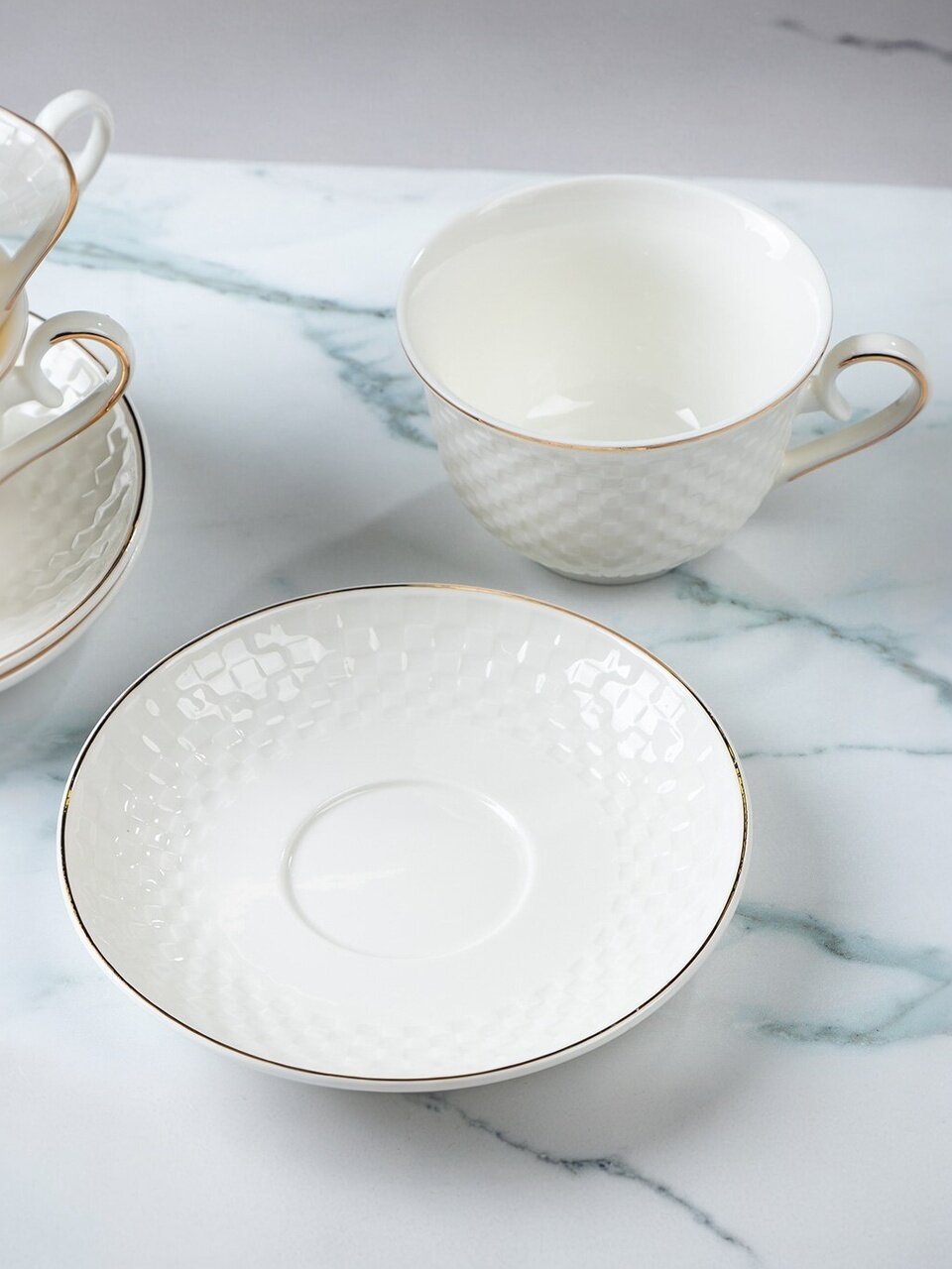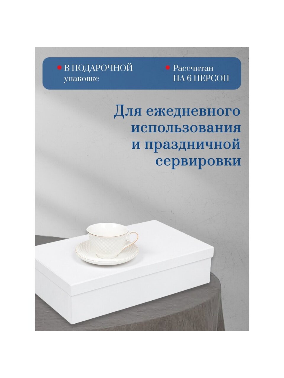 Чайный набор Daniks Кембридж на 6 персон — элегантный подарок и стиль для вашего дома: 12 предметов, керамика с золотой каймой, в подарочной упаковке