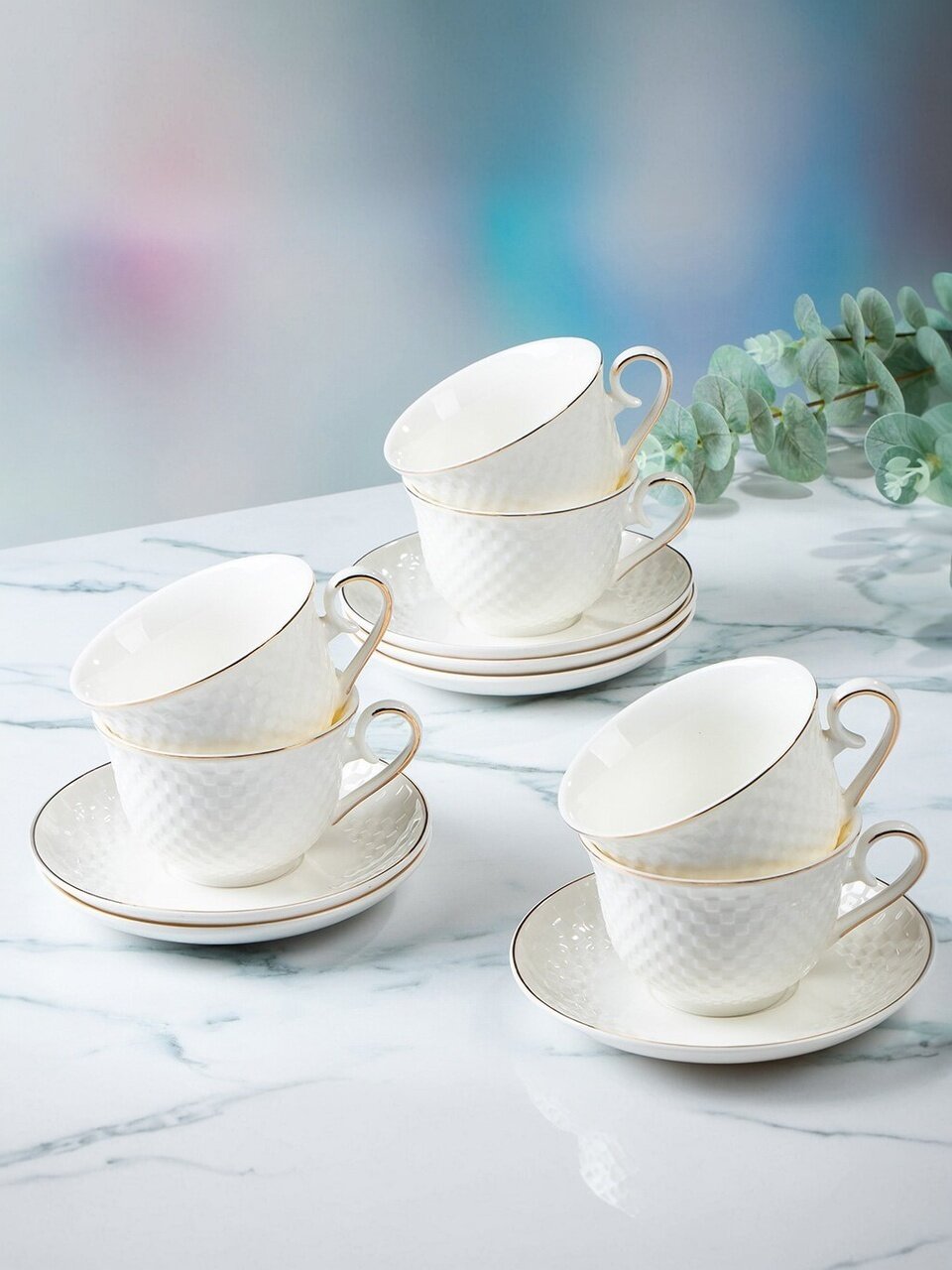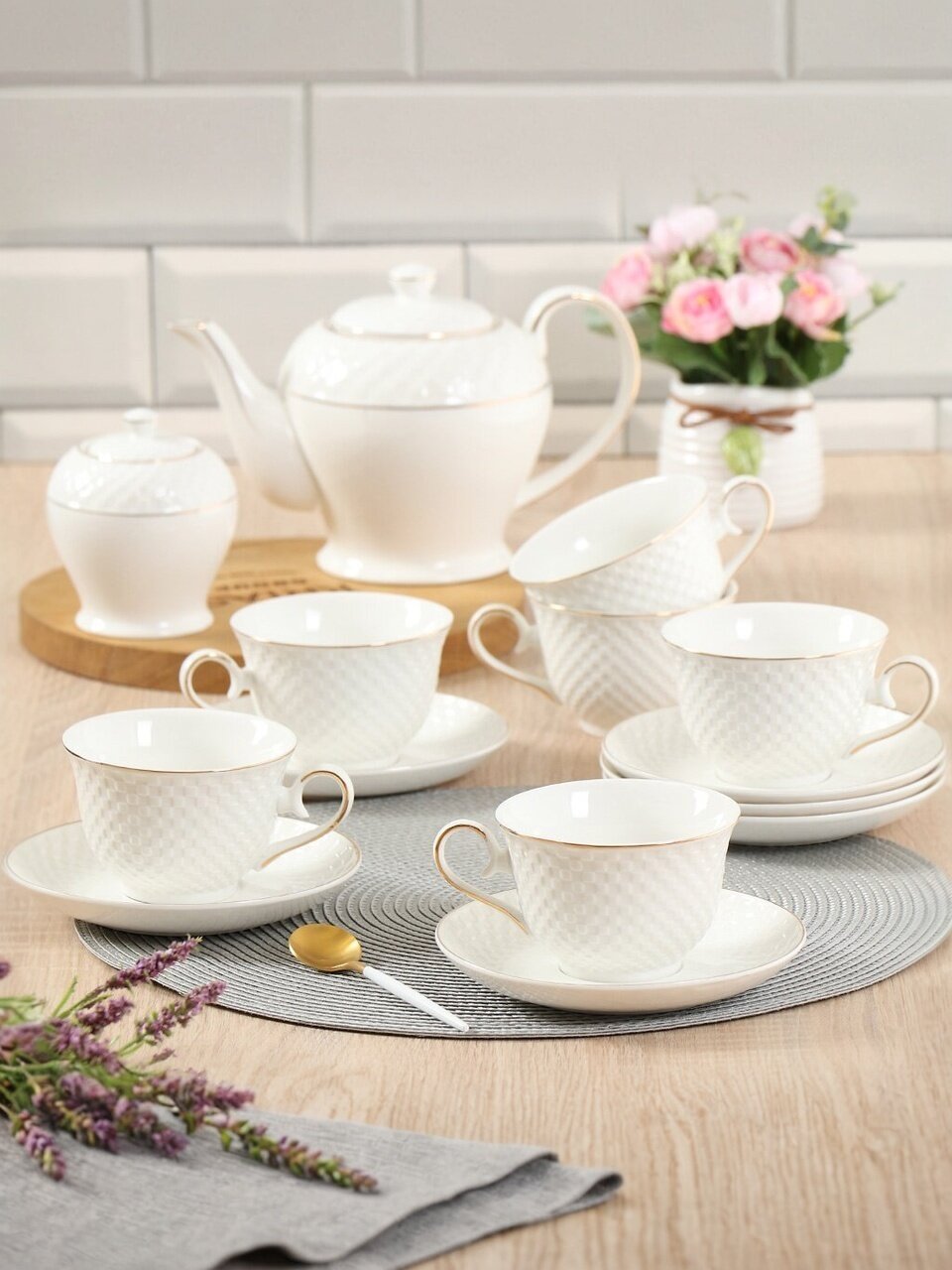 - Практичность: 12 предметов из прочной керамики, объём чашки 250 мл — оптимально для чаепития в кругу семьи или гостей