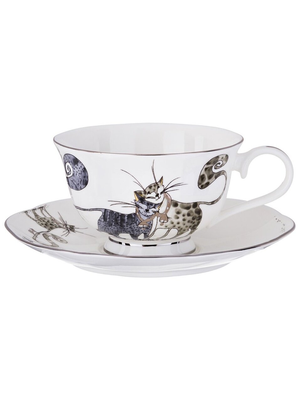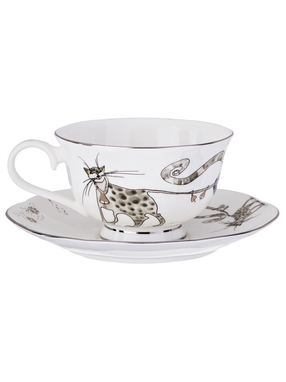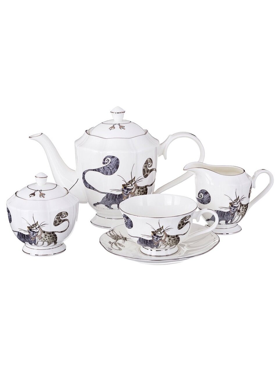 Чайный сервиз Lefard «Котики», 15 предметов на 6 персон: фарфор с золотой каймой, стильный подарок для уютных чаепитий и семейных встреч.