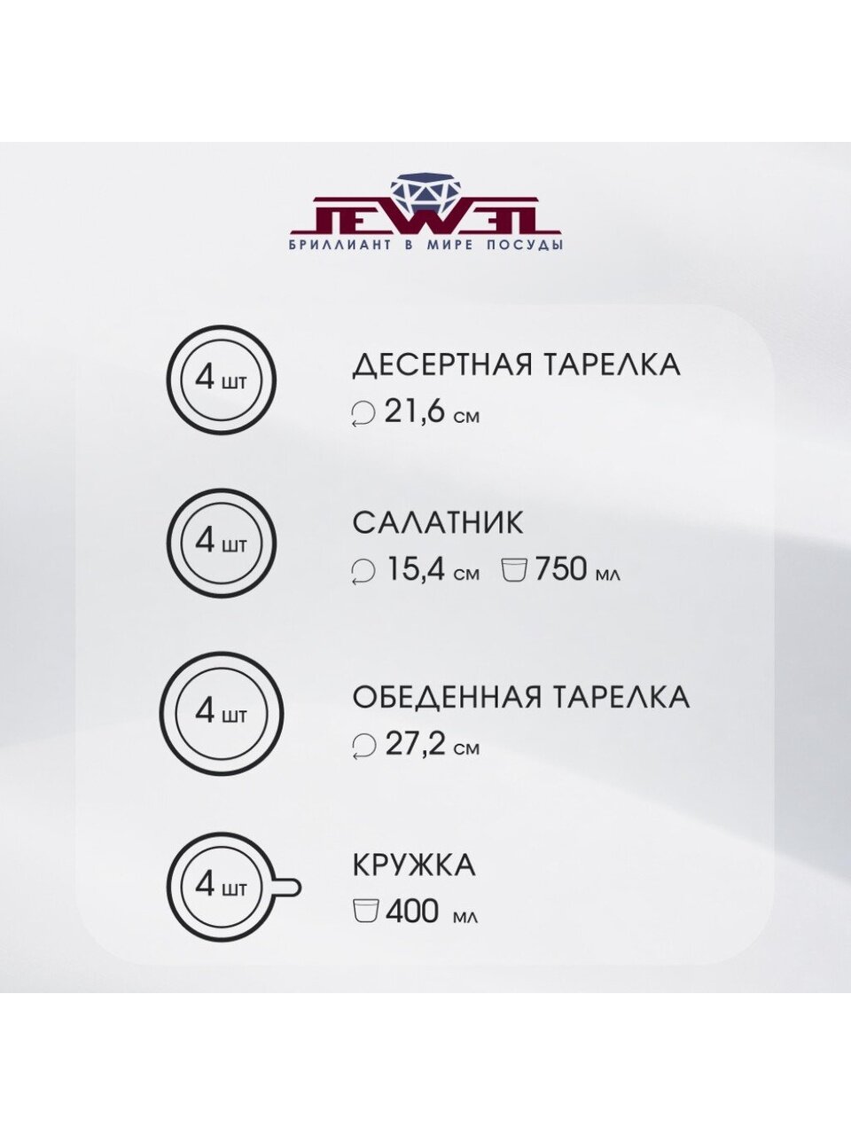 Сервиз столовый керамика Jewel Сахара Эконом: 16 предметов на 4 персоны — стильный подарок и практичное решение для дома и дачи, можно мыть в посудомойке.