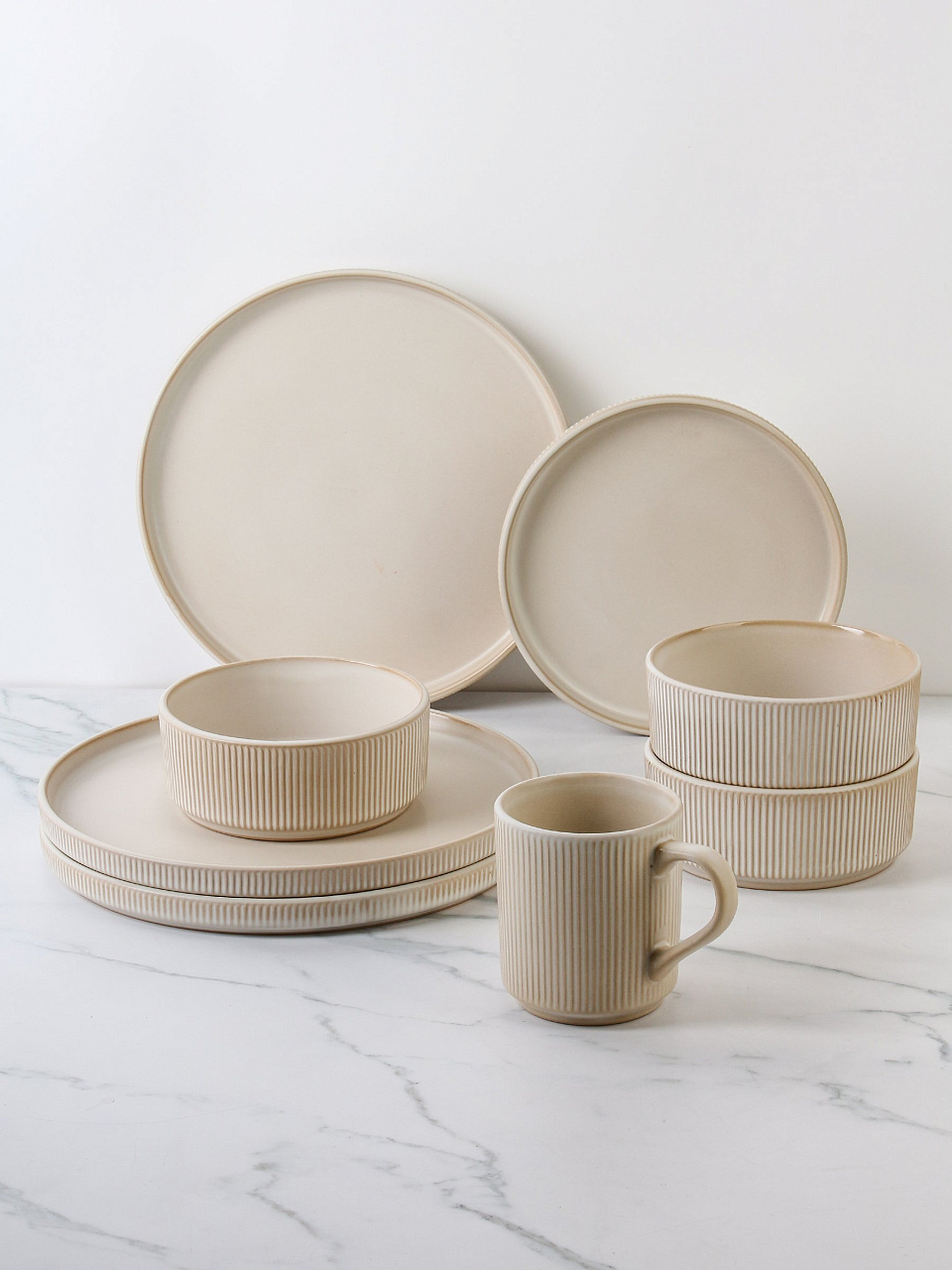 - Износостойкая керамика: 16 предметов, рассчитанных на долгий срок службы, можно мыть в посудомоечной машине и использовать в микроволновке.