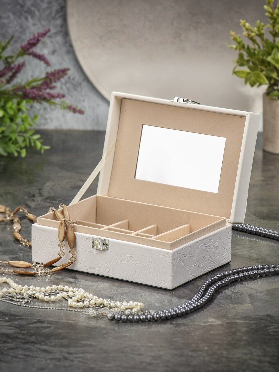 - Внутри шкатулки предусмотрены различные отделения и секции, что позволяет удобно организовать хранение украшений, предотвращая их запутывание и потерю.