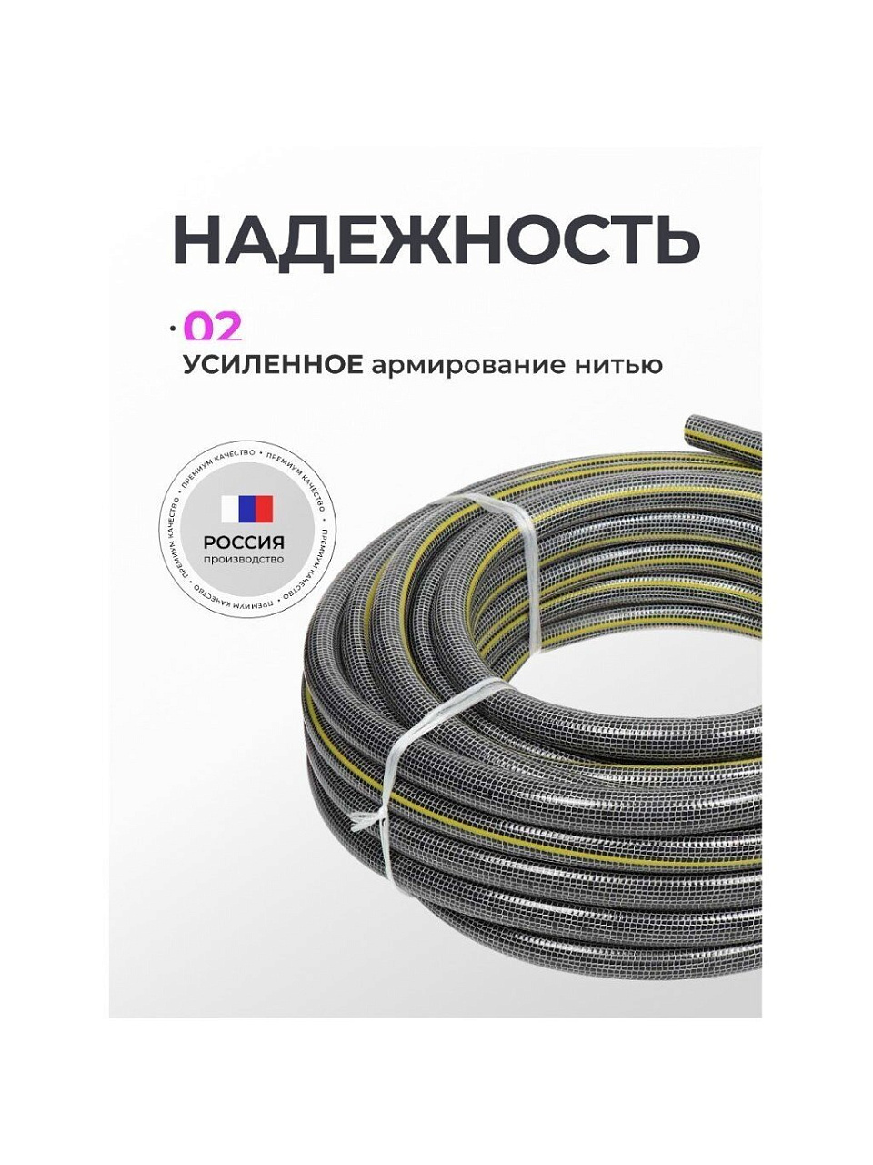 Рукава состоят из трех слоев ПВХ, армированных по технологии HTC (вязанным каркасом из полиэфирной нити), вязанный каркас обеспечивает необходимое рабочее давление. Рекомендованное рабочее давление - 8 атм. Конструкция рукавов полностью исключает какие либо перегибы и перекручивания. Высокая прочность и надежность рукавов, а также большой запас по давлению до 23 атм., позволяет вывести их применение на более широкий уровень, и использовать их в альтернативу некоторым рукавам высокого давления. Особенно широкое применение рукава находят на стационарных и мобильных мойках, автозаправочных станциях, в узлах и агрегатах автомобилей, для комплектации пневмоинструмента и т.п. При использовании рукавов для организации полива, гарантия на рукава - 5 лет.) Температура использования от -15 до +60° С.