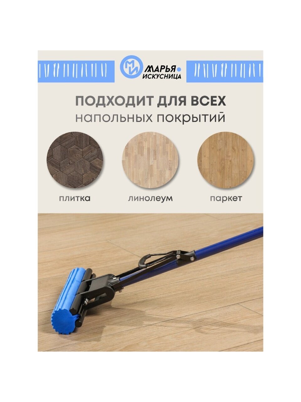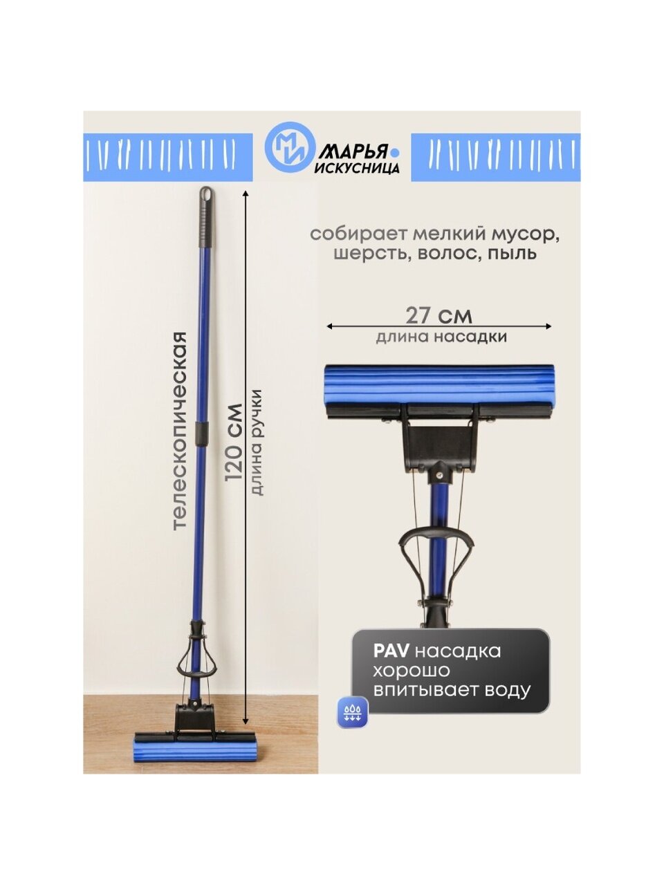 Вы можете приобрести «Швабра МОП губка, ПВА, 120х27 см, синяя, с отжимом, телескопическая ручка, синяя, Марья Искусница, KD-8050A» и другие товары в нашем интернет-магазине в Белгороде по низким ценам и с бесплатным самовывозом.