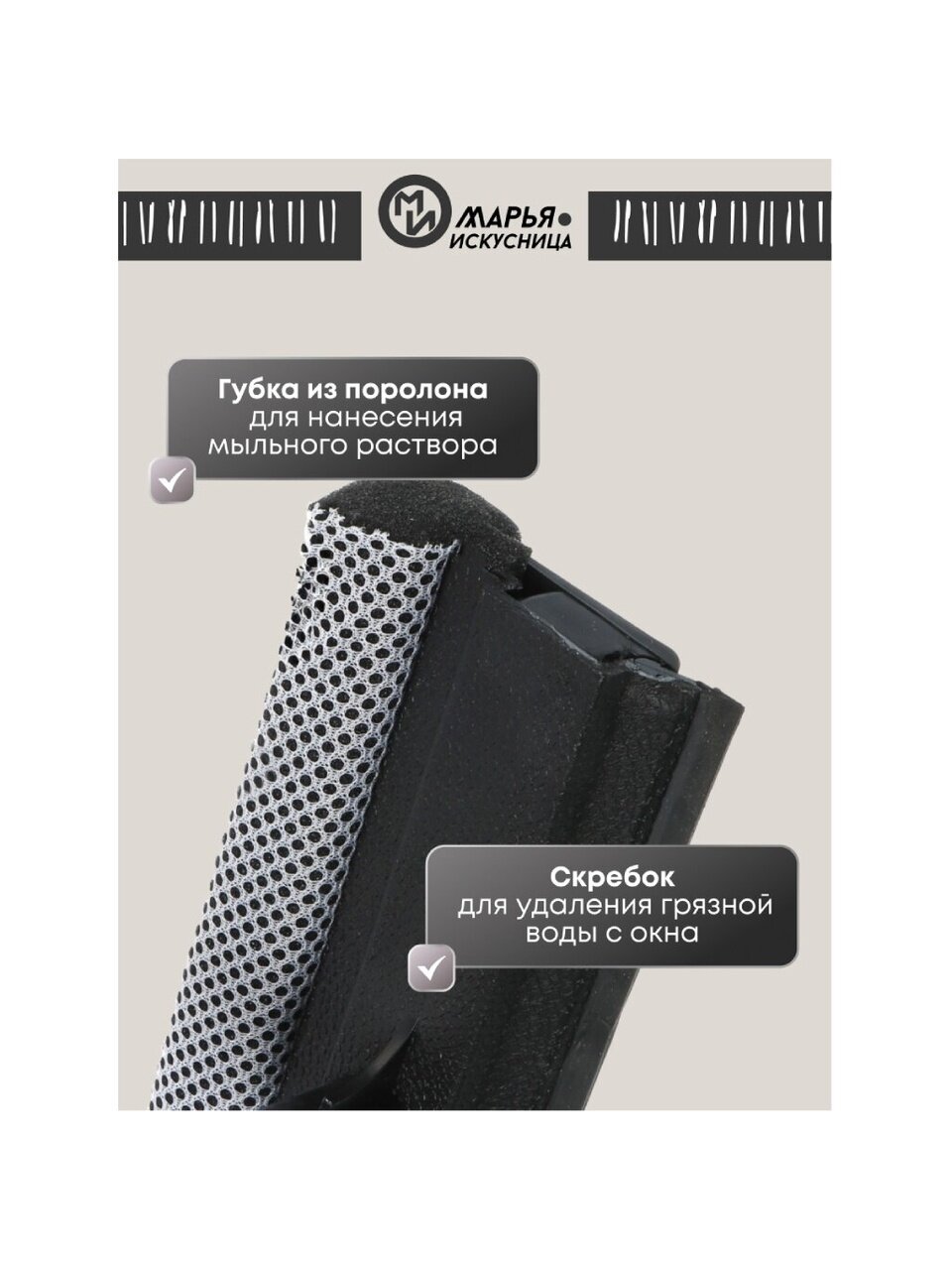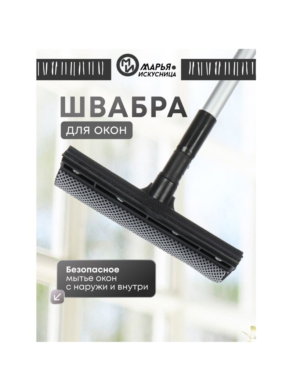 Швабра-окномойка - удобное приспособление для мытья окон. Она снабжена скребком из качественной резины, не твердеющей при низких температурах, и губкой из плотного поролона, покрытого синтетической сеткой, стойкой к истиранию. Блок данной швабры не сменный.