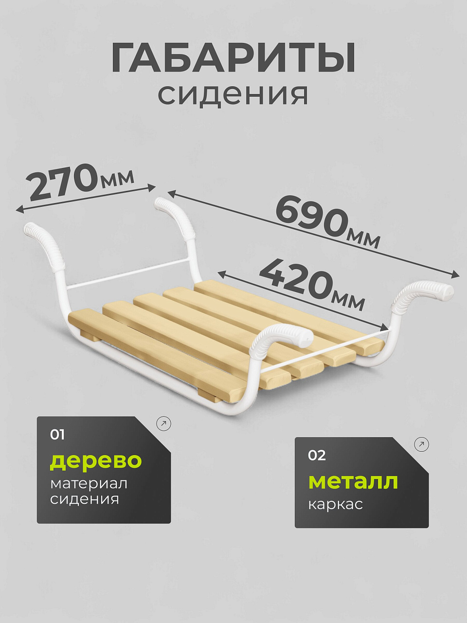- Размер сиденья: 420х270 мм.