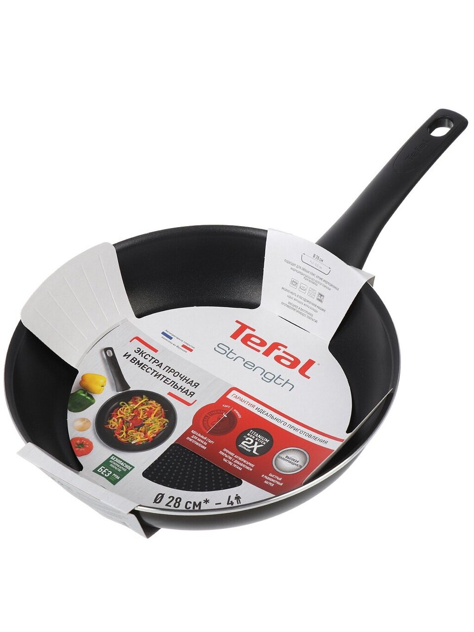 Сковорода Tefal Strength 28 см — оптимальное решение для вкусных домашних блюд: прочный алюминий, антипригарное покрытие, до 24 месяцев гарантии.
