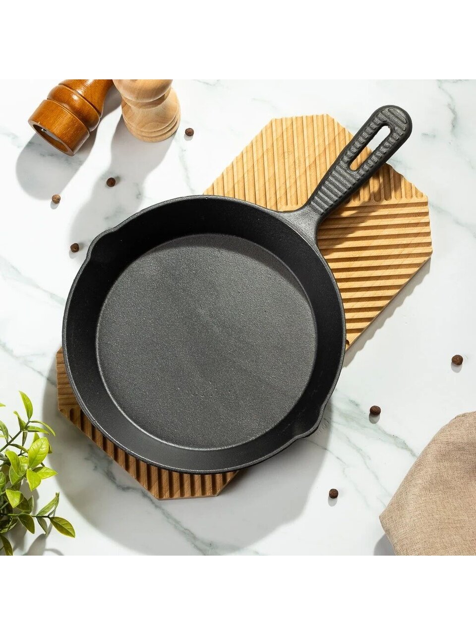 Чугунная сковорода 24 см Y4-8873 — прочная классика для идеальной прожарки мяса и рыбы, долговечность на десятилетия без переплаты.