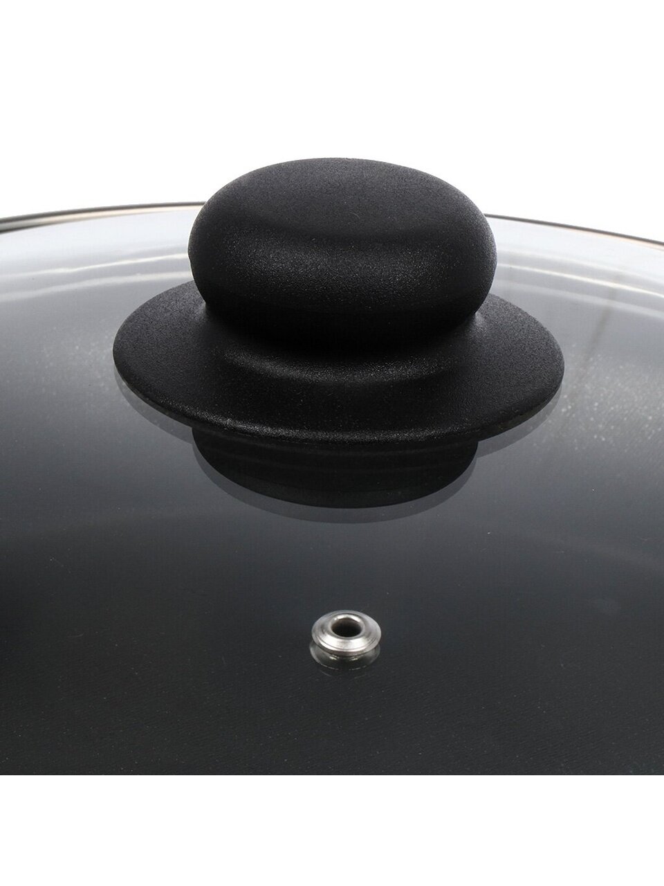 - Диаметр 28 см и толстое дно 5 мм — равномерный нагрев, жарка без перепадов температуры