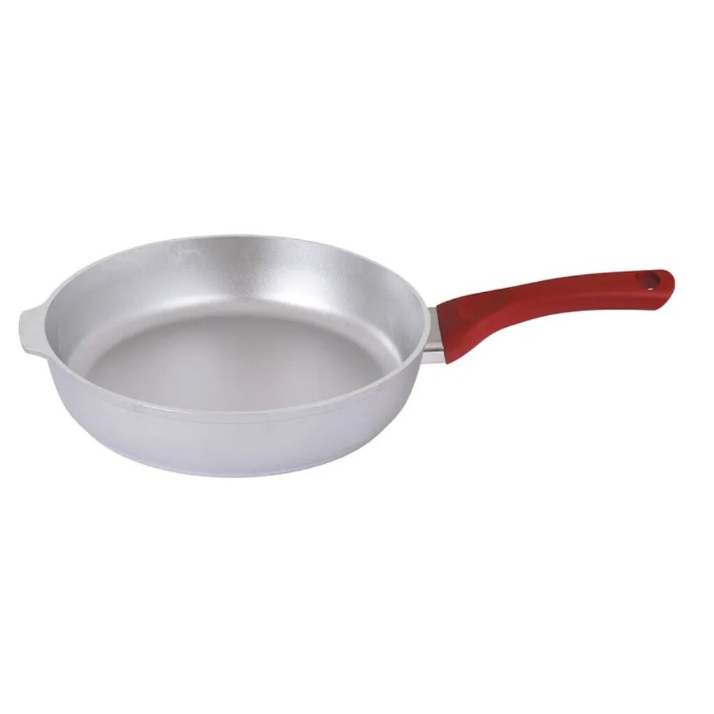 Чем отличается литая алюминиевая сковорода от штампованных аналогов? Прежде всего, прочностью и устойчивостью к деформации при нагреве. У этой модели нет съемной ручки и крышки в комплекте, зато ручка надежно закреплена, а сама сковорода рассчитана на долгий срок службы. Подходит ли для индукционной плиты? Нет, только для газовых и электрических плит. Как использовать для жарки без антипригарного покрытия? Просто прогрейте и добавьте немного масла — продукты не пригорят при правильной температуре.