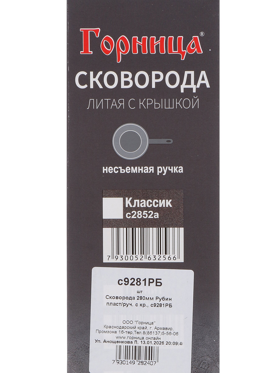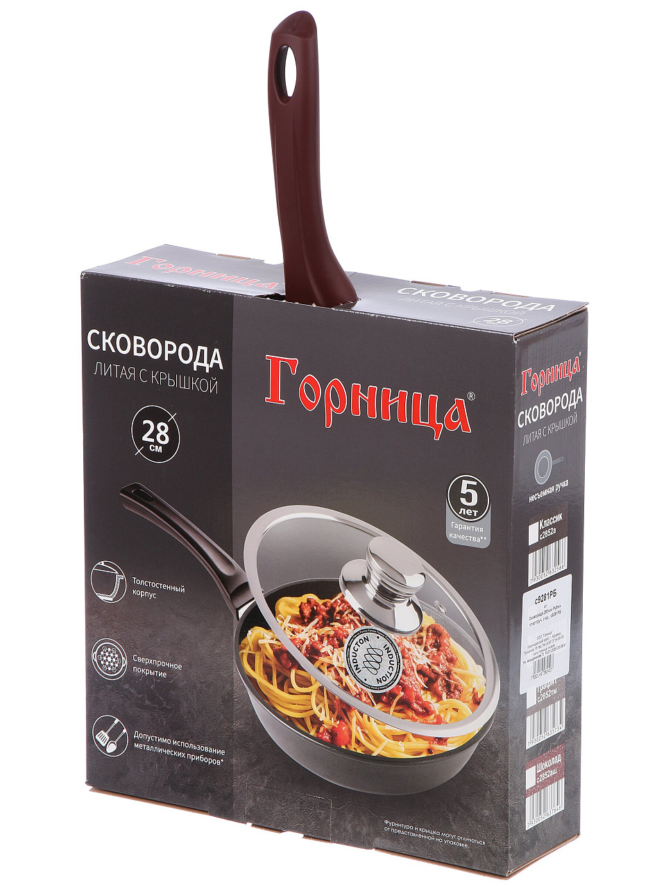 Вы можете приобрести «Сковорода литой алюминий, 28 см, антипригарное покрытие, Горница, Рубин, с крышкой, с9281РБ» и другие товары в нашем интернет-магазине в Борисоглебске по низким ценам и с бесплатным самовывозом.