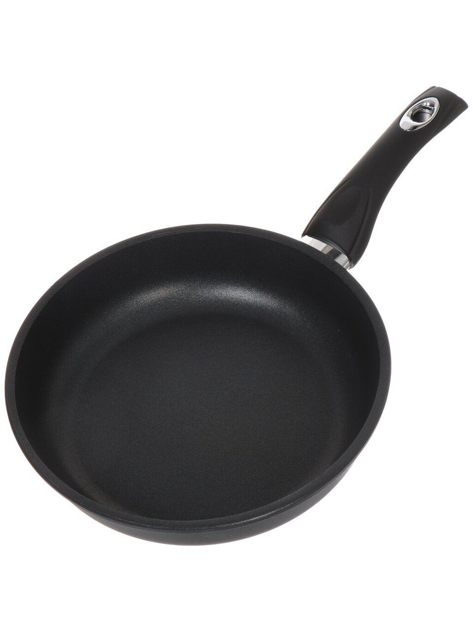 - Диаметр 22 см и антипригарное тефлоновое покрытие — удобно готовить рыбу, мясо, оладьи, омлеты