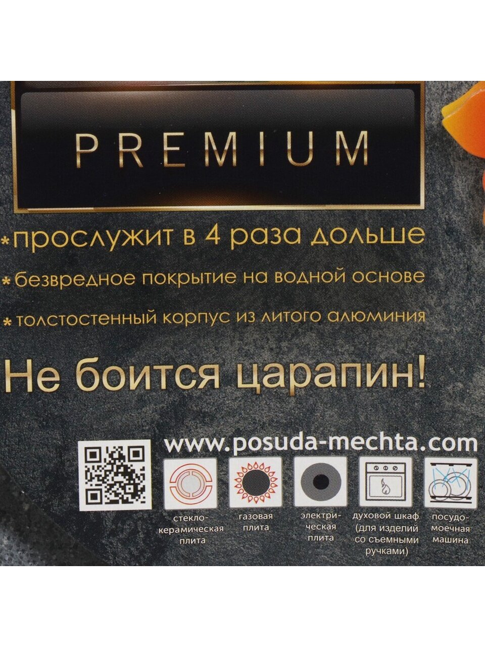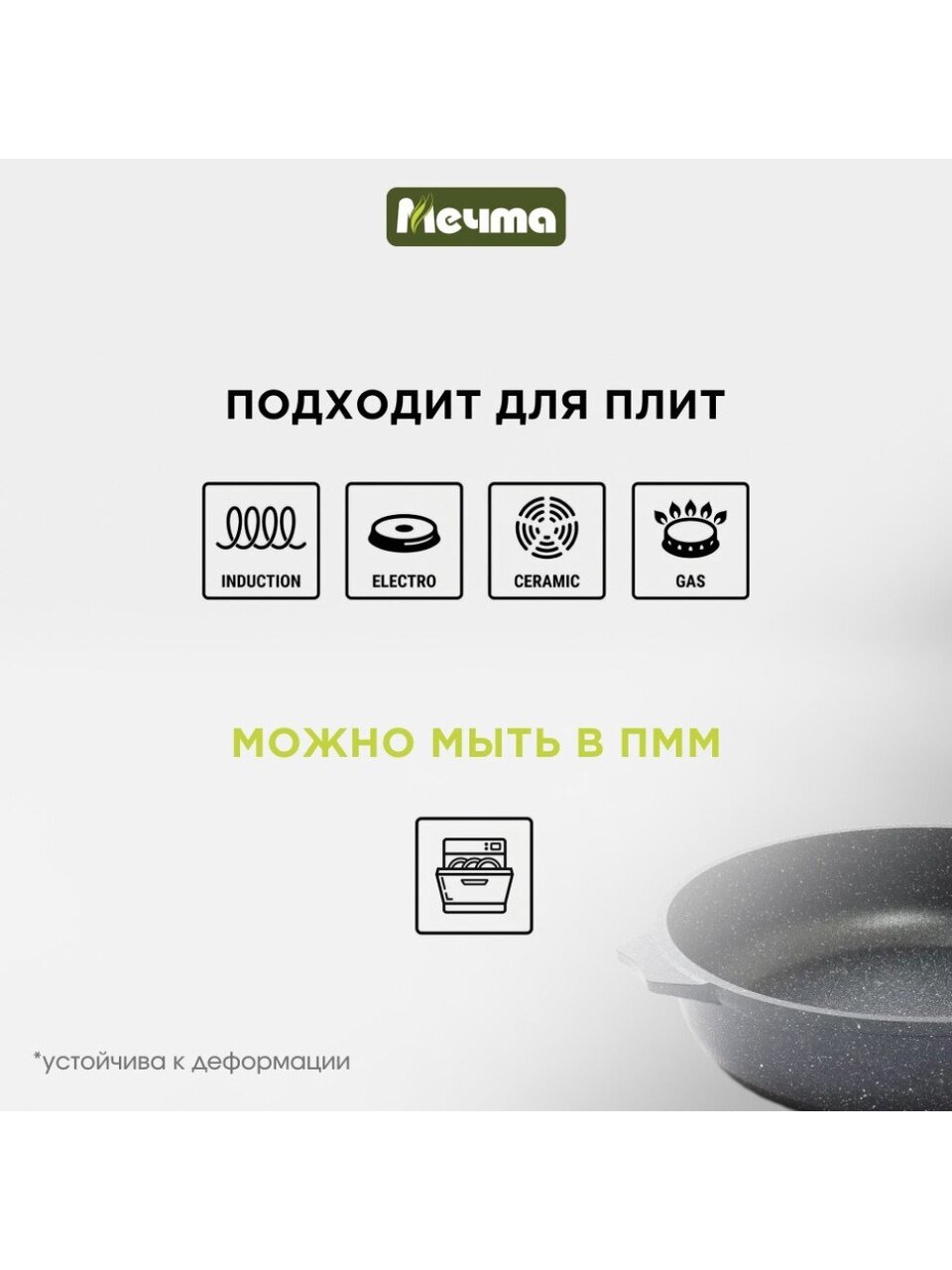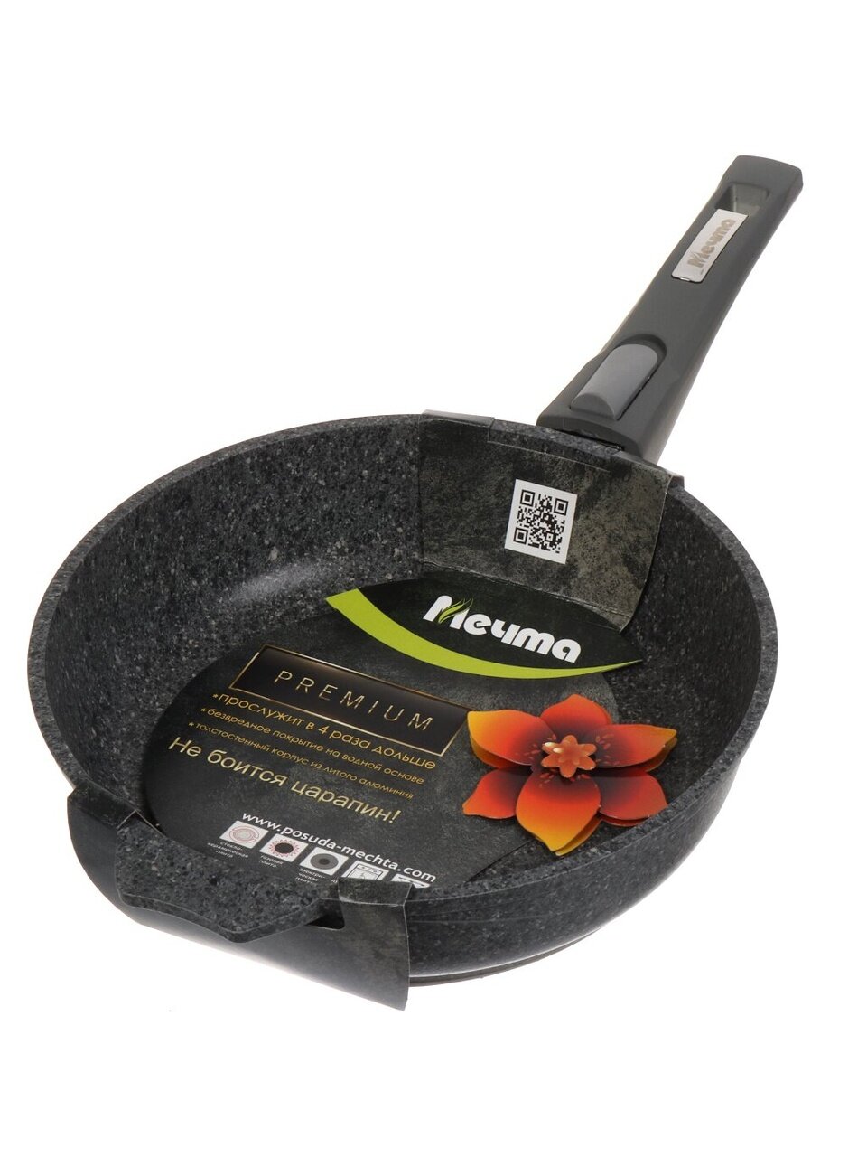 Сковорода литой алюминий 24 см Мечта Premium grey — антипригарная классика для кухни: съемная ручка, прочное покрытие, подходит для жарки и тушения.