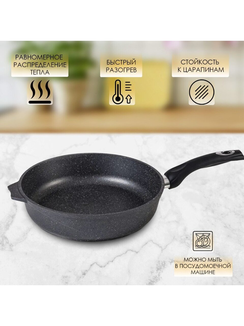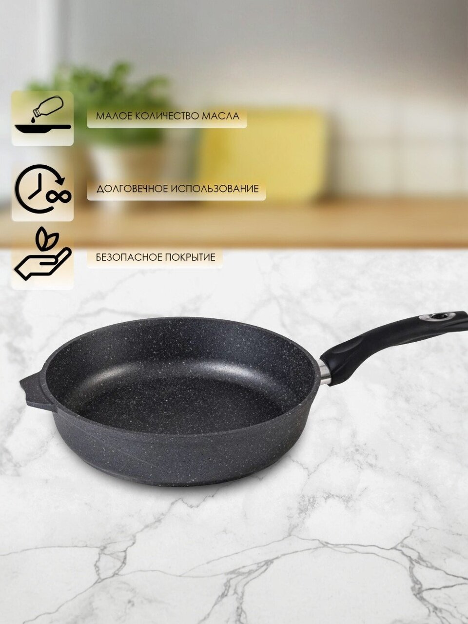 Сковорода литой алюминий 24 см Мечта Гранит: антипригарное покрытие, толщина дна 6 мм, идеальна для жарки без масла — готовьте вкусно и легко!