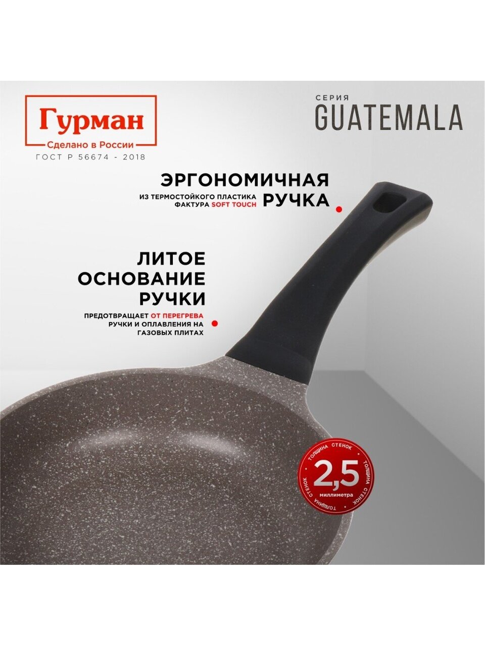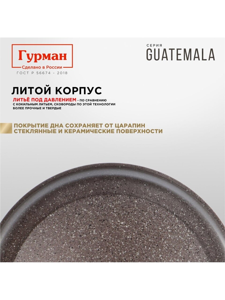 Литая сковорода 20 см Гурман Guatemala — идеальный выбор для здорового питания: антипригарное мраморное покрытие, долговечность, выгодная цена.
