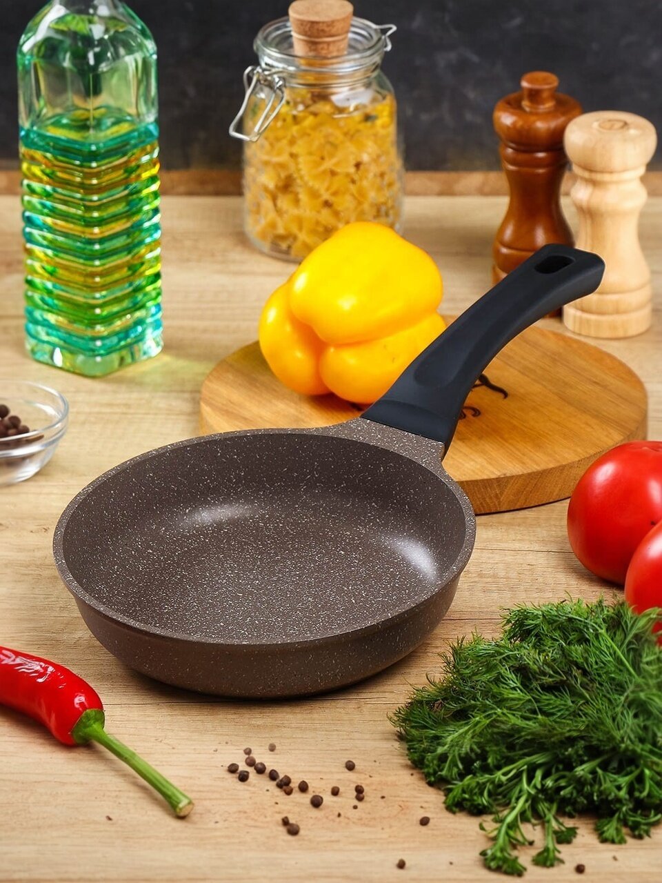 - Мраморное антипригарное покрытие: готовьте без масла, легко отмывайте после жарки