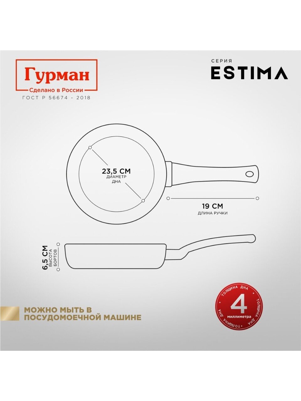 Сковорода Гурман Estima диаметром 28 см — это современное решение для тех, кто ищет антипригарную сковороду для индукции или универсальную посуду для всех типов плит. Благодаря литому алюминию и гранитному покрытию, еда готовится быстро и равномерно, не пригорает и сохраняет вкус. Часто спрашивают: "Как выбрать сковороду для омлета или жарки мяса?" — ответ прост: глубокая форма, диаметр дна 23,5 см и высота борта 65 мм позволяют готовить блюда для всей семьи без разбрызгивания масла.