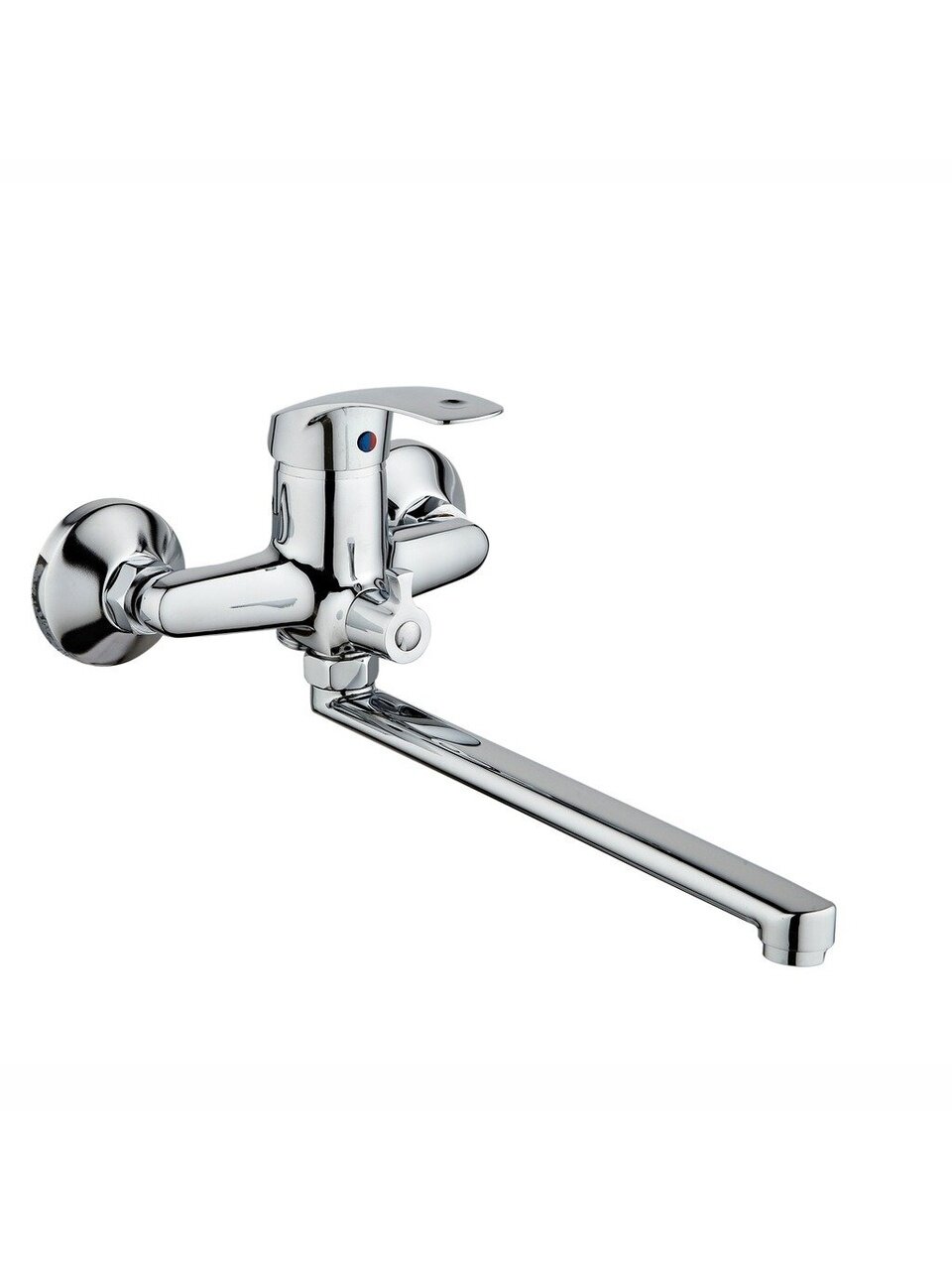 Длинный излив позволяет удобно набирать воду в ванну или использовать смеситель для душа, обеспечивая максимальный комфорт при эксплуатации и экономию пространства.