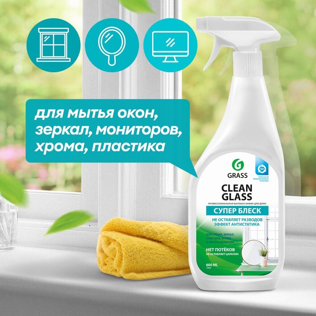 Спрей для стекол Grass Clean – это универсальное чистящее средство для окон, стекол и пластика. Не оставляет подтеков, разводов, экономичен в применении. Придает поверхностям антистатические свойства. Может применяться в офисе для чистки мебели, мониторов, стекол, зеркал, торгового оборудования. Готов к применению. Со средством Clean Glass мытье окон в вашем доме станет проще.