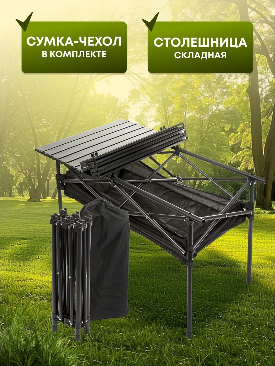 Одним из главных преимуществ является его портативность. В комплект входит удобная сумка для хранения, которая значительно облегчает транспортировку и хранение. Стол легко складывается и раскладывается, что делает его идеальным выбором для путешествий и активного отдыха.