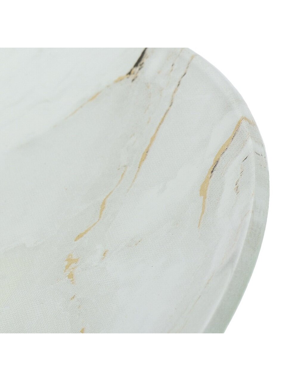 Диаметр тарелки — 18 см, материал — безопасное закалённое стекло с декоративным рисунком под мрамор.