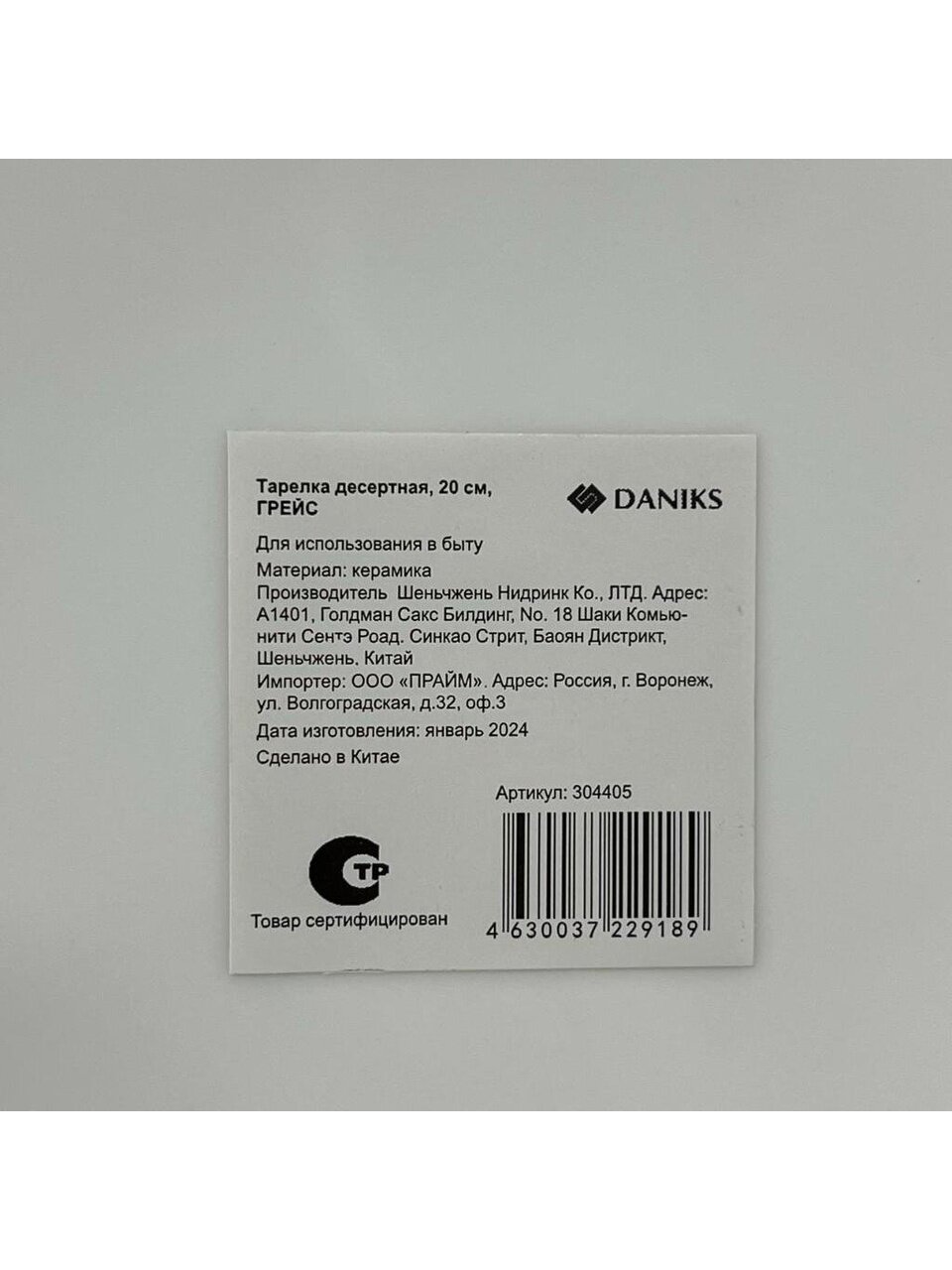 Тарелка десертная Daniks Грейс 20 см — универсальное решение для стильной сервировки, подходит для дома, дачи и подарка. Керамика, можно мыть в посудомоечной машине.