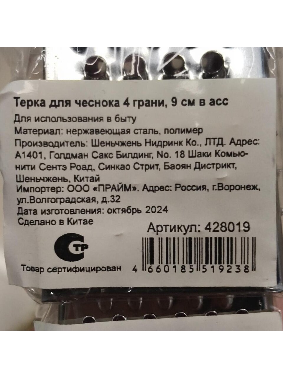 Вы можете приобрести «Терка для чеснока, 4 грани, 9 см, нержавеющая сталь, рукоятка пластик, навеска, Y4-6448, в ассортименте» и другие товары в нашем интернет-магазине в Ставрополе по низким ценам и с бесплатным самовывозом.