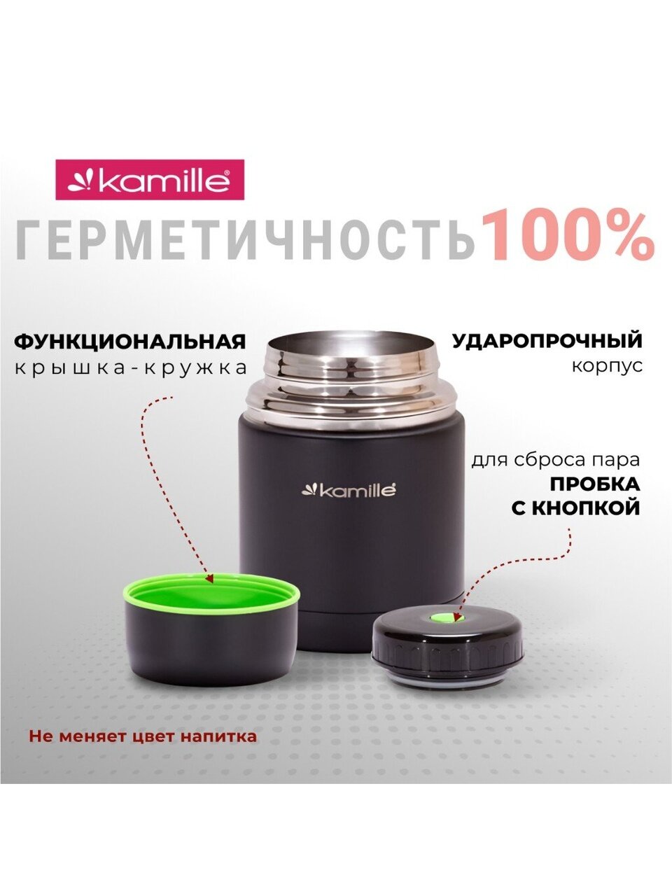 Термос для еды Kamille выгодно отличается от пластиковых и стеклянных аналогов долговечностью и экологичностью. Он не впитывает запахи, не выделяет вредных веществ при нагреве, а крышка с клапаном предотвращает протекание. Подходит ли термос для еды для супа или вторых блюд? Да, благодаря широкому горлу и объёму 0.5 л, вы сможете взять с собой полноценный обед или ужин. Используйте его дома, на даче, в походе или в офисе — универсальность и мобильность всегда с вами.