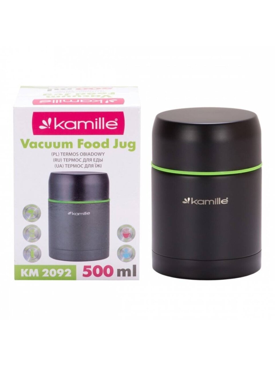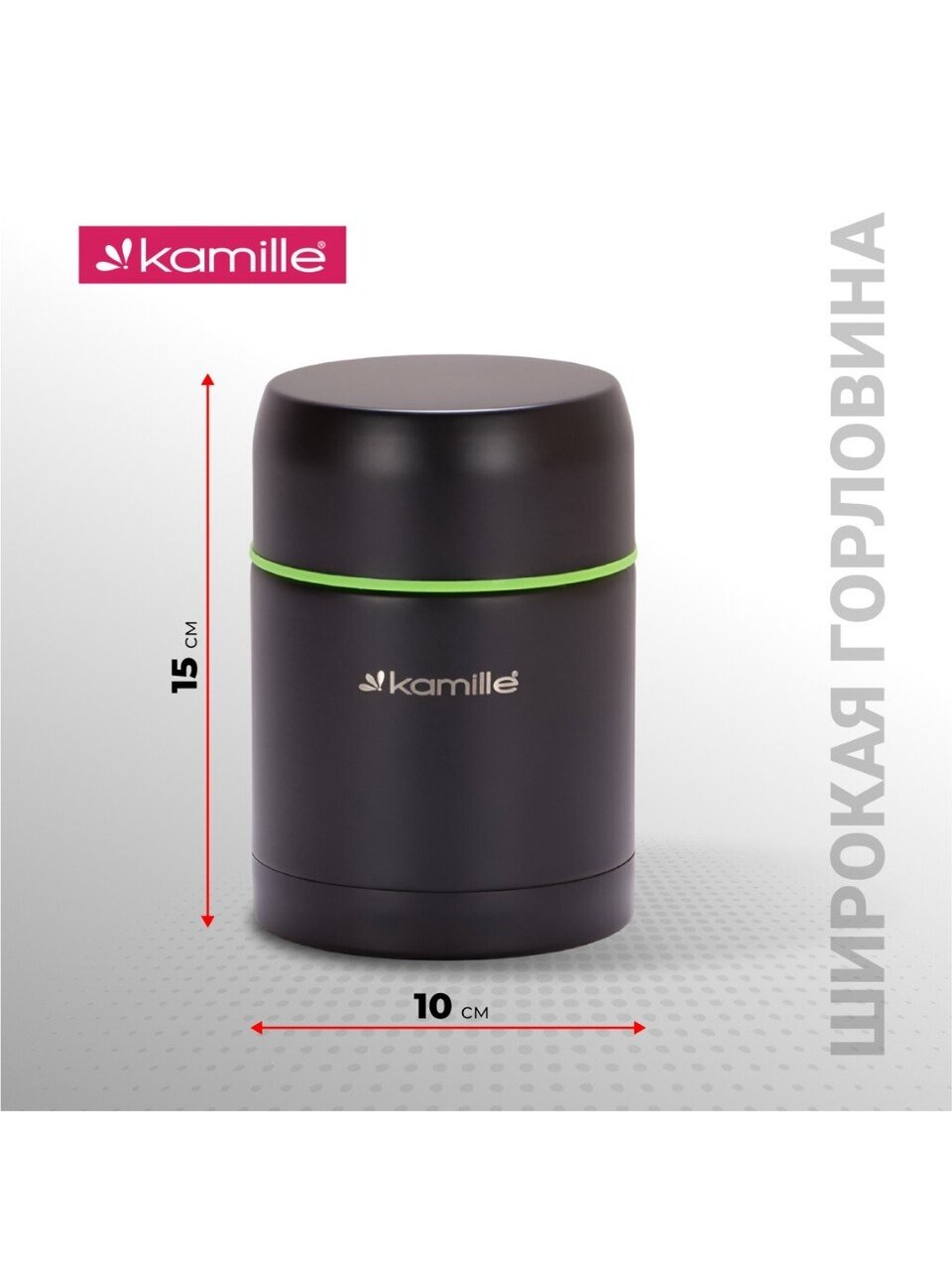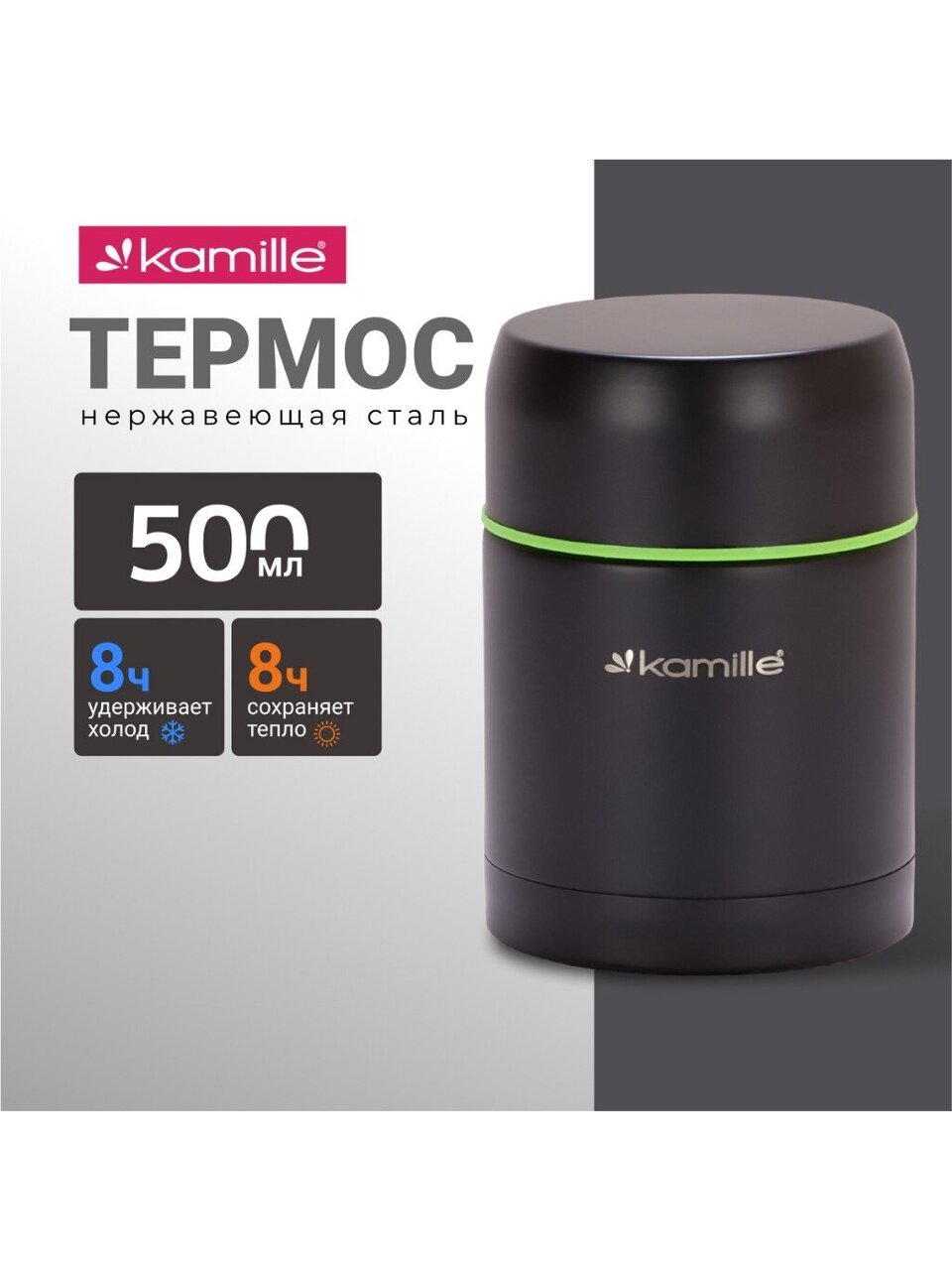 Термос для еды Kamille 0.5 л с широкой горловиной: держит тепло и свежесть до 8 часов, ударопрочный корпус из нержавеющей стали — удобно брать с собой в город и на природу.
