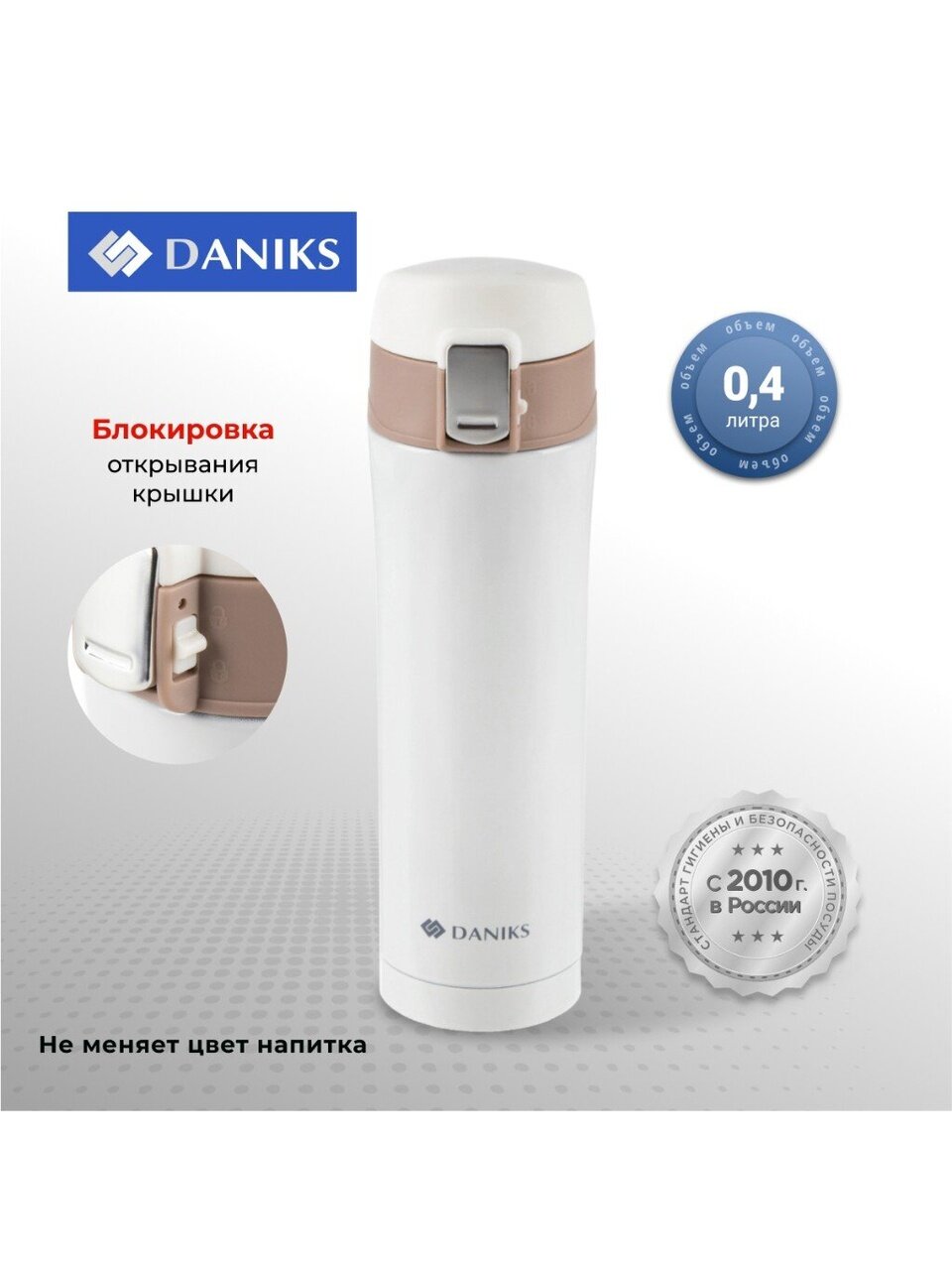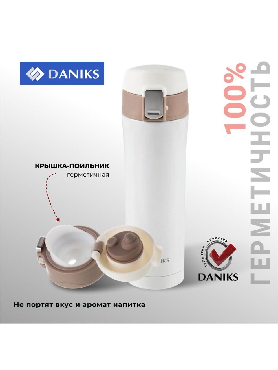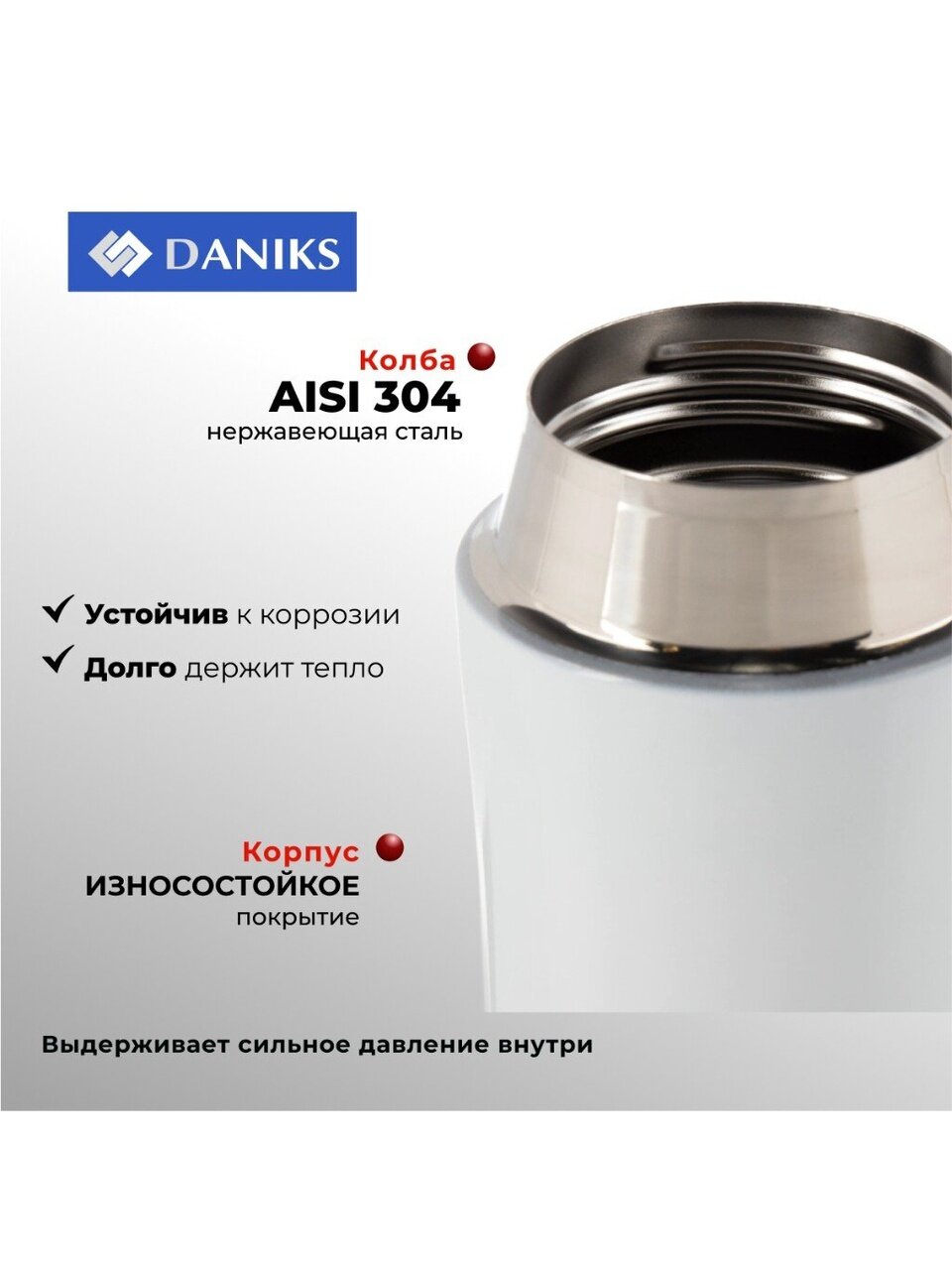 Термос Daniks 0.4 л из нержавеющей стали с узкой горловиной: держит тепло и холод до 24 часов, компактен, идеален для города, спорта и поездок.