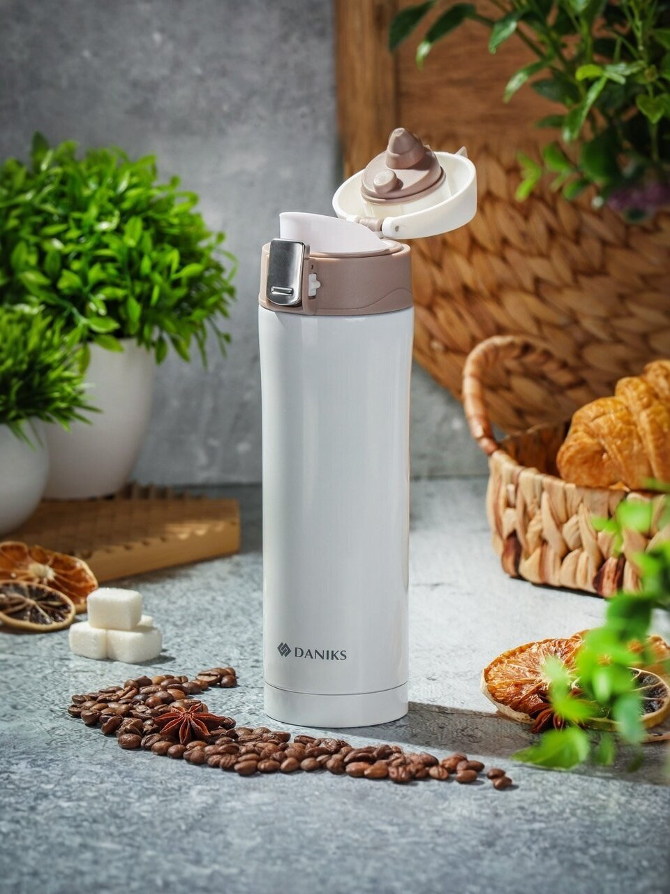 Если вы ищете, какой термос лучше выбрать для кофе или чая на работу, обратите внимание на этот вариант: он сочетает прочность, удобство и стильный белый дизайн с рисунком. В отличие от моделей с широкой горловиной, узкая конструкция минимизирует теплопотери и облегчает питьё на ходу. Термос Daniks не впитывает запахи, его легко мыть, а гарантия производителя — 12 месяцев — подтверждает надёжность. Подходит ли для автомобиля или подарка? Да, благодаря универсальному объёму и лаконичному оформлению, это отличный выбор для разных сценариев использования.