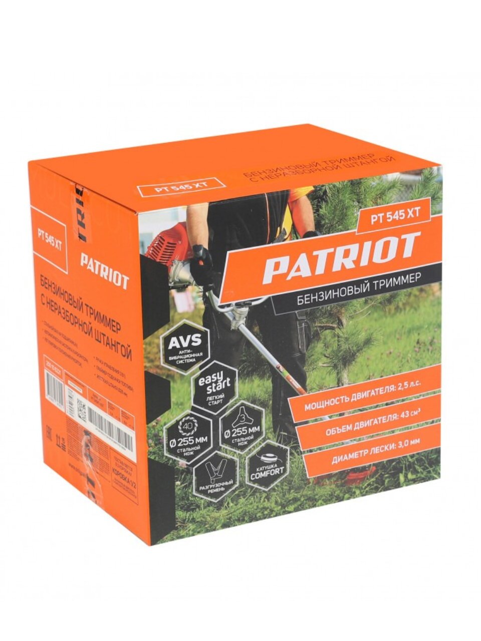 Бензотриммер Patriot PT 545 XT — мощность 2,5 л.с., леска 3 мм, нож, антивибрация. Идеально для дачи и сложных участков, гарантия 2 года.
