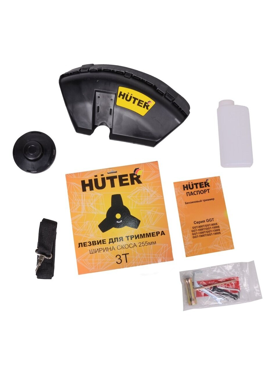 - Использовать бензиновый триммер Huter GGT-1300T (в отличие от электрических) можно где угодно, не зависимо от удаленности внешних источников энергии.