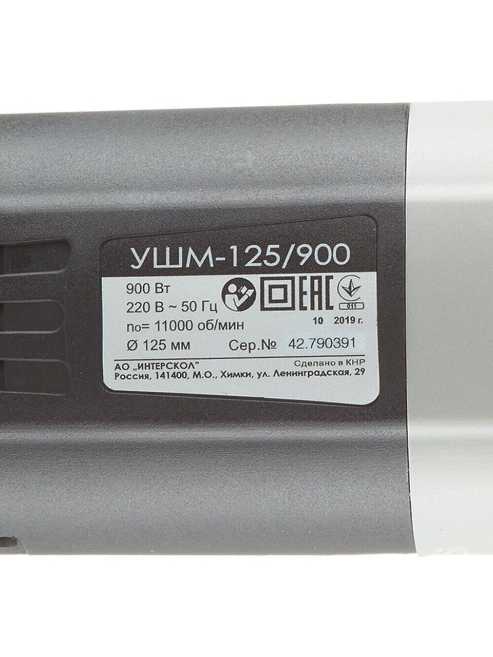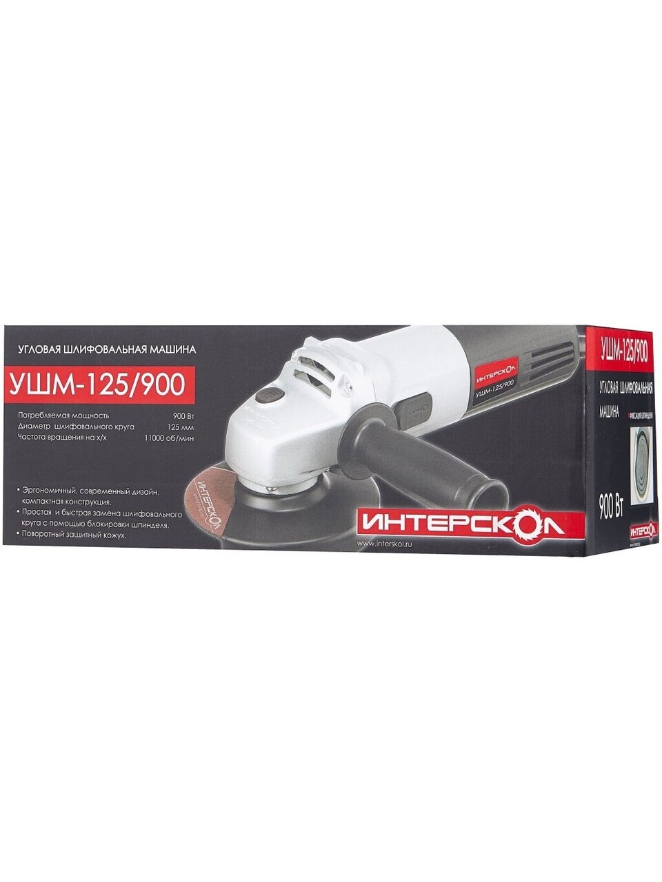 Угловая шлифовальная машина Интерскол УШМ-125/900 состоит из привода, представляющего собой коллекторный электродвигатель, размещенный в пластмассовом корпусе, и углового редуктора в корпусе из магниевого сплава. Рабочий инструмент крепится на резьбовом конце шпинделя. Машина может работать шлифовальным, полировальным или отрезным кругом, а также зачистным инструментом: металлическими или капроновыми чашечными и дисковыми щетками, лепестковыми шлифовальными головками и т.п.