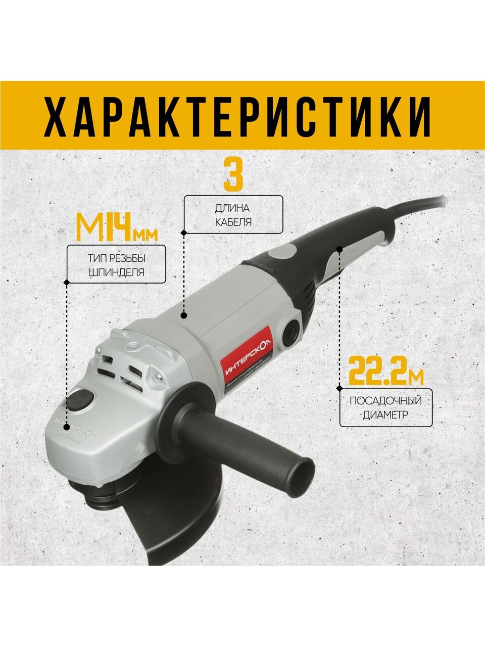 Угловая шлифовальная машина Интерскол УШМ-180/1800М состоит из привода, представляющего собой коллекторный электродвигатель, размещенный в пластмассовом корпусе, и углового редуктора в корпусе из магниевого сплава. Рабочий инструмент крепится на резьбовом конце шпинделя. Машина может работать шлифовальным, полировальным или отрезным кругом, а также зачистным инструментом: металлическими или капроновыми чашечными и дисковыми щетками, лепестковыми шлифовальными головками и т.п.