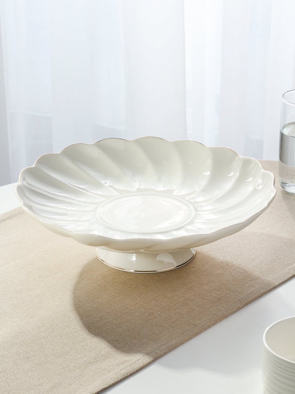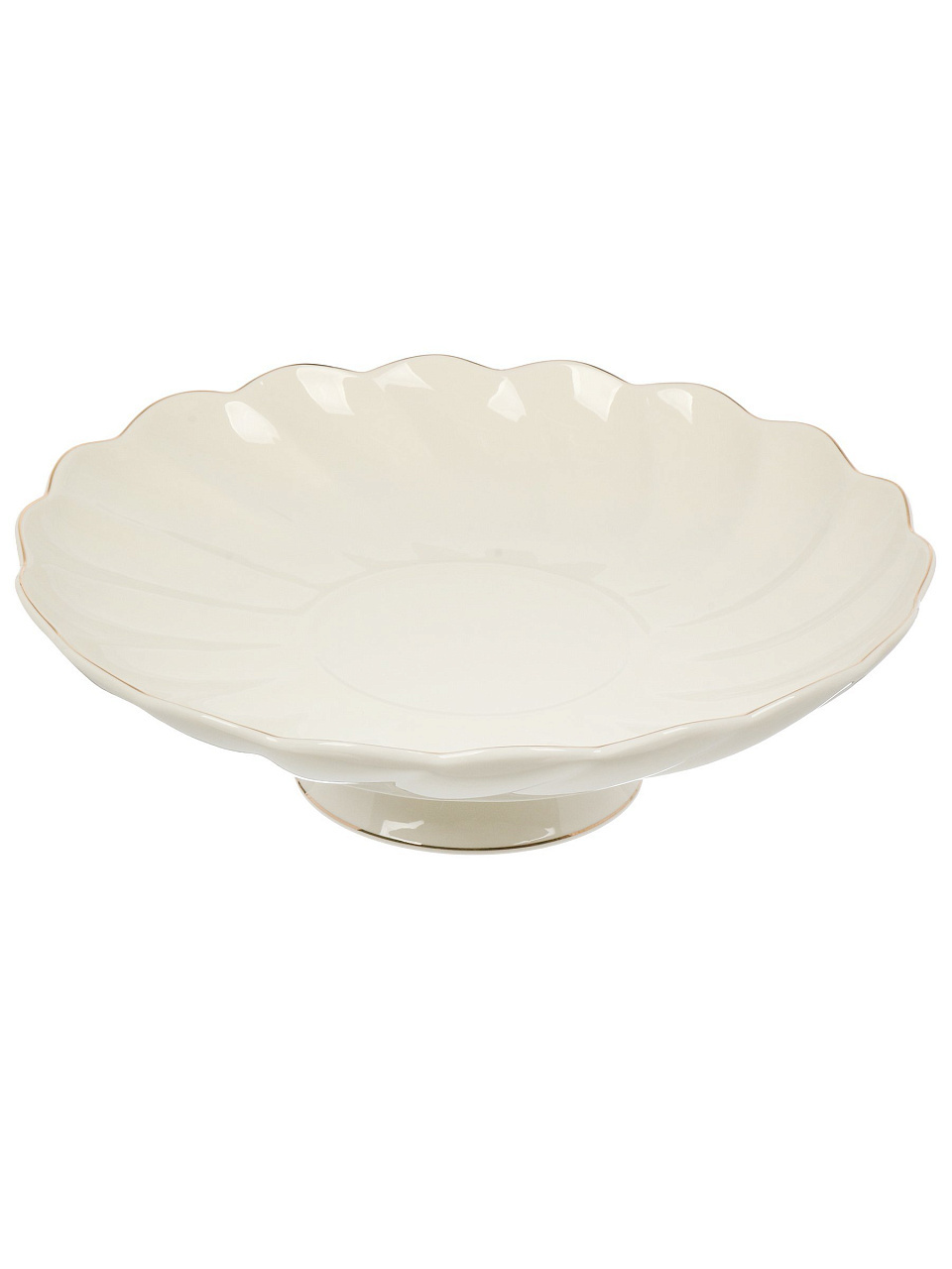 - Уникальный дизайн: круглая фарфоровая фруктовница на ножке с элегантной золотой линией — акцент интерьера и сервировки.